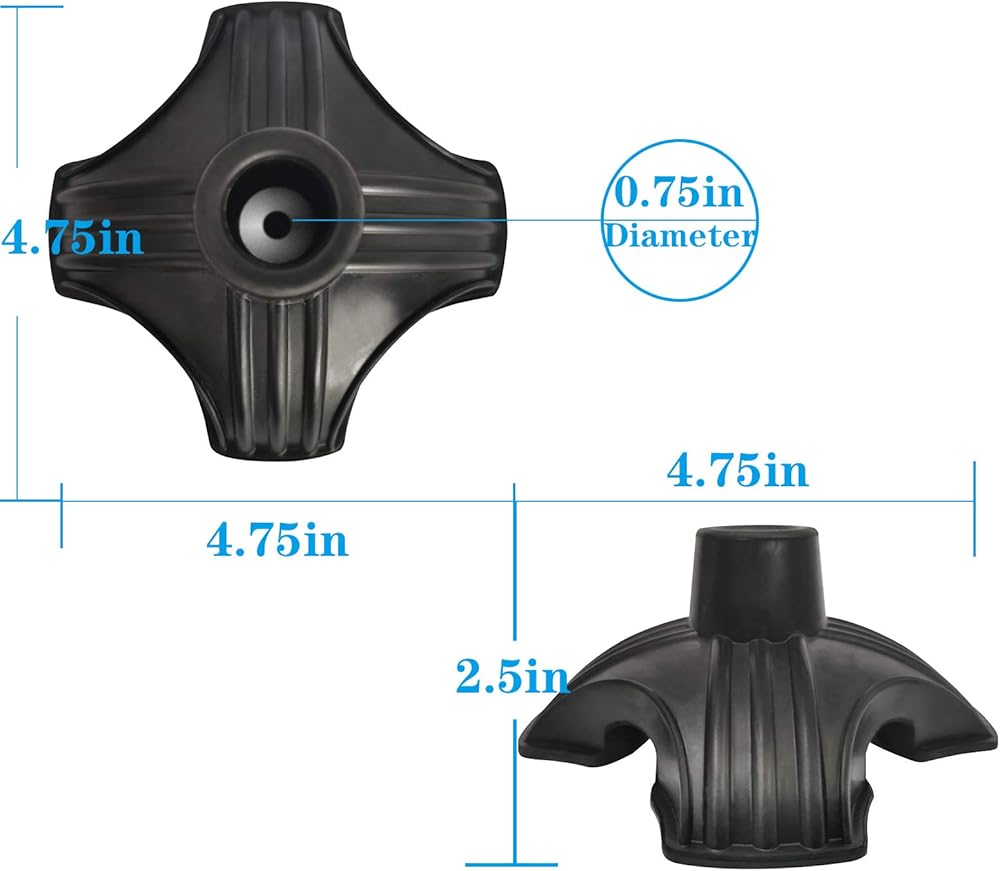 رأس العصا الطبية - وسادة قدم بديلة مطاطية رباعية لعصا المشي - أربع نقاط وقوف ذاتي رباعي للعصا - ملحق عالمي 4 أرجل بعصا المشي (أسود)