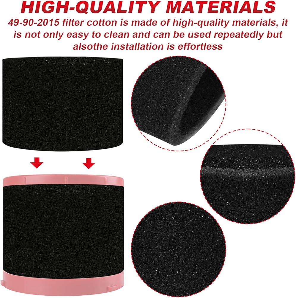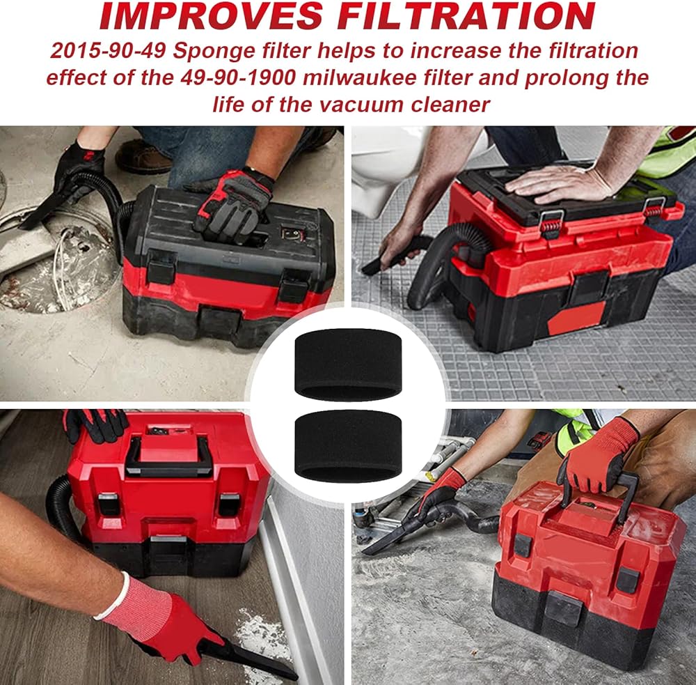 مرشحات إسفنجية 49-90-2015 لمرشحات مكنسة HEPA 49-90-1900 تناسب مكنسة ميلووكي الرطبة والجافة اللاسلكية M18 0780-20 0880-20 0960-20 0970-20 (قطعتان)