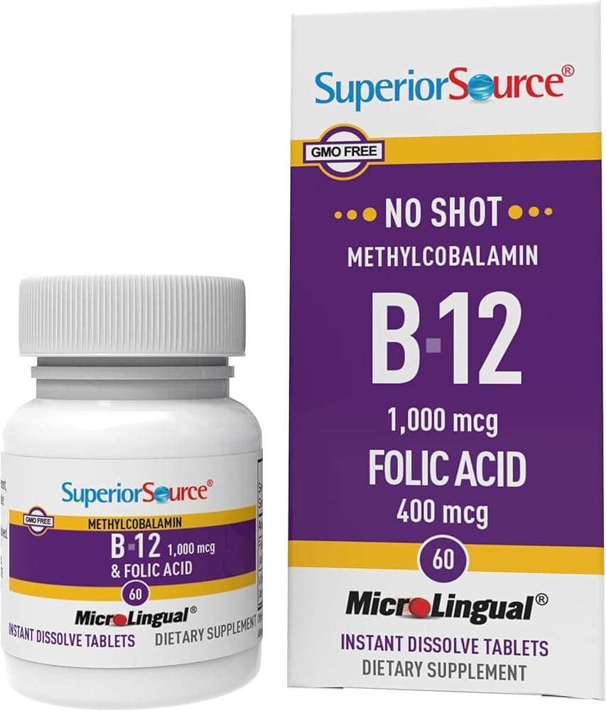 مصدر فائق بدون جرعة فيتامين ب12 ميثيل كوبالامين (1000 ميكروجرام)، حمض الفوليك، أقراص ميكرولينغوال سريعة الذوبان، 60 قرصًا، شكل نشط من ب12، زيادة الطاقة، صحة القلب، تعزيز عملية التمثيل الغذائي، غير معدل وراثيًا