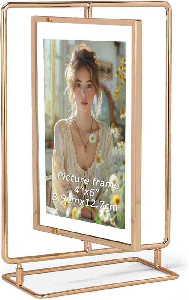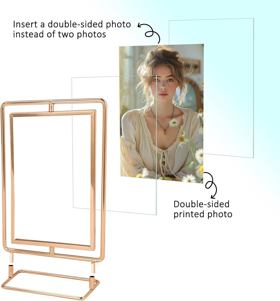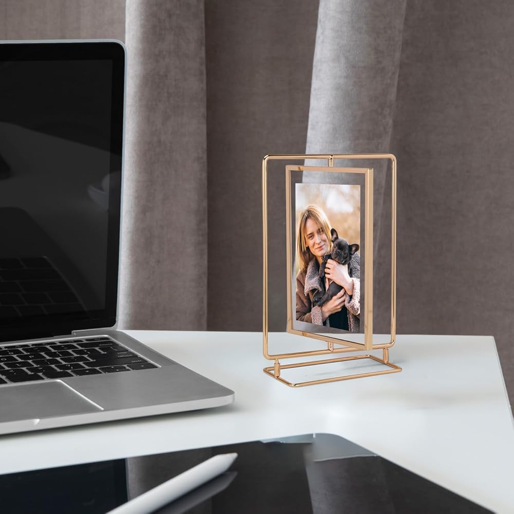 تأثير عائم: إطار الصورة مقاس 3.5 × 5 مصنوع من زجاج شفاف مزدوج وإطار معدني ذهبي، ويمكن لإطار الصورة مقاس 3.5 × 5 حمل صورة مقاس 3.5 × 5 و2 × 3 بتأثير عائم. فقط من أجل وضع الطاولة أو عرض المكتب عموديًا.