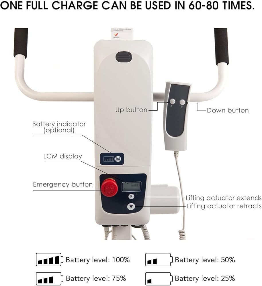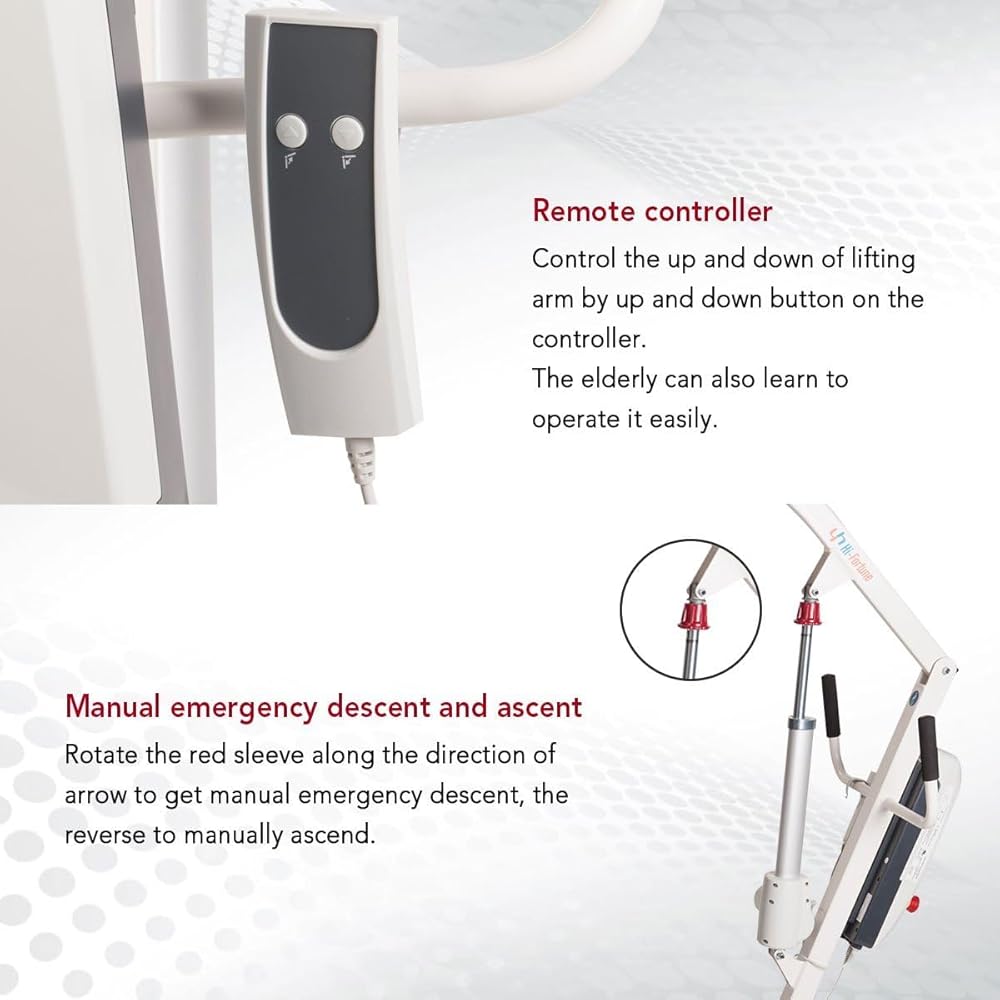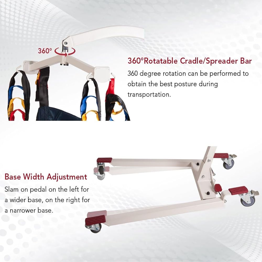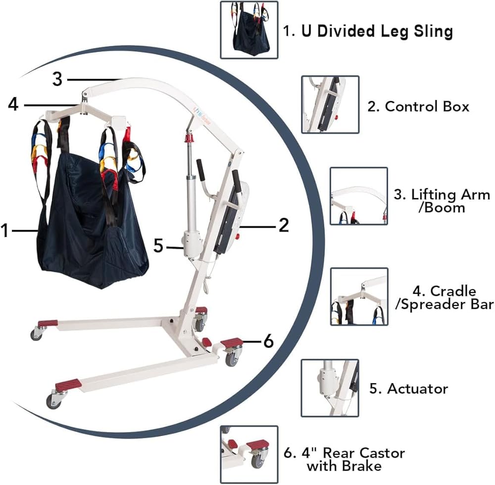 • السعة: أقصى سعة تحميل هي 400 رطل. نطاق الارتفاع يسمح بالرفع من الأرض والأسطح العالية. شريط دوار مبطن مع دوران 360 درجة لمزيد من الراحة والملاءمة. يتميز المصعد عالي الجودة بأنه يعمل بالبطارية وقد تم تصميمه للمساعدة في تقليل احتمالية إصابة ظهر مقدم الرعاية وضمان التعامل الآمن مع المستخدم.