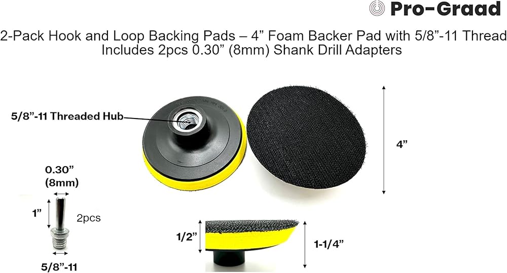 2 عبوة من وسادات دعم بخطاف وحلقة مقاس 3 بوصات، وسادة داعمة من الإسفنج مع وسادات احتياطية مقاس 5/8 بوصة - 11 - 3 بوصة للاستخدام مع مطحنة الزوايا أو أقراص تلميع الصنفرة - تتضمن قطعتين محولات ساق 0.30 بوصة (8 مم)