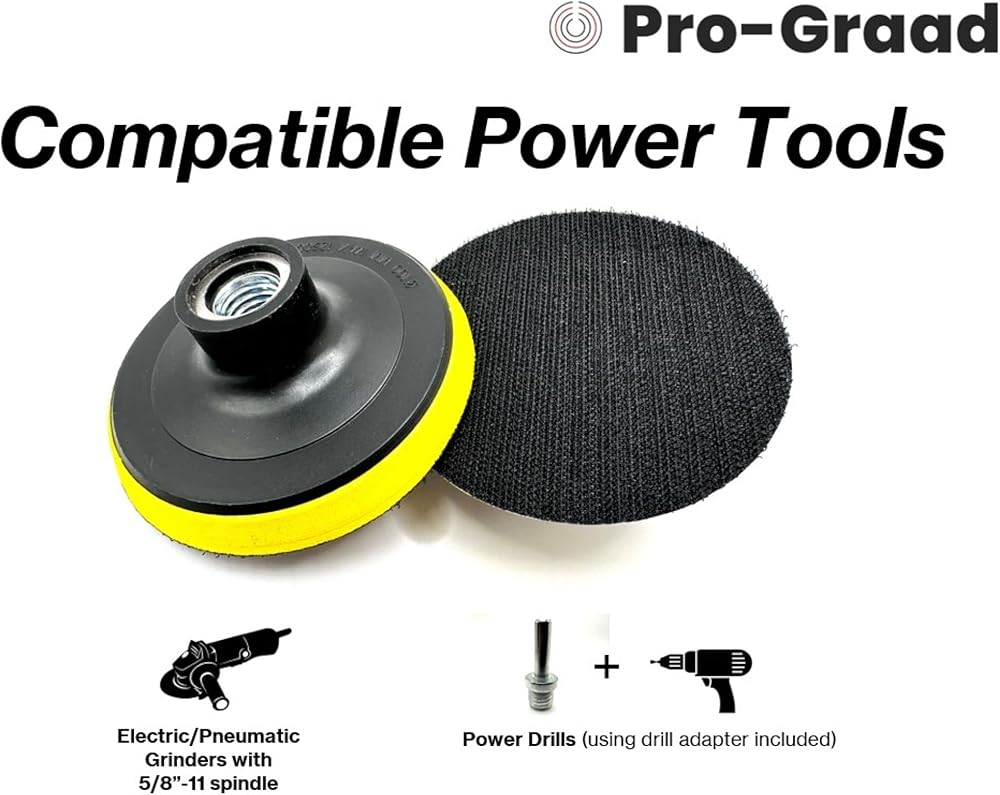 • تستخدم مع أقراص الصنفرة ذات الخطاف والحلقة أو وسادات التلميع على الخشب والمعادن والبلاستيك والسيارات والحجر والأرضيات وأسطح العمل وتطبيقات الصنفرة والتلميع. منصات دعم الخطاف والحلقة مع محول مثقاب 8 مم للاستخدام على المطاحن الزاوية والمثاقب الكهربائية وغيرها من الأدوات الهوائية والكهربائية.