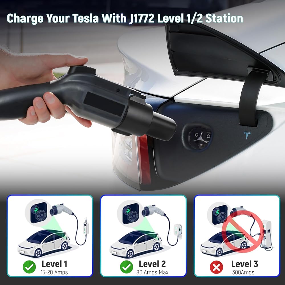 ملحقات محول الشحن Tesla to J1772 - محول شاحن Tesla المحسن 2023 80A / 250V AC مع شحن سريع - متوافق مع طراز Tesla X/Y/3/S