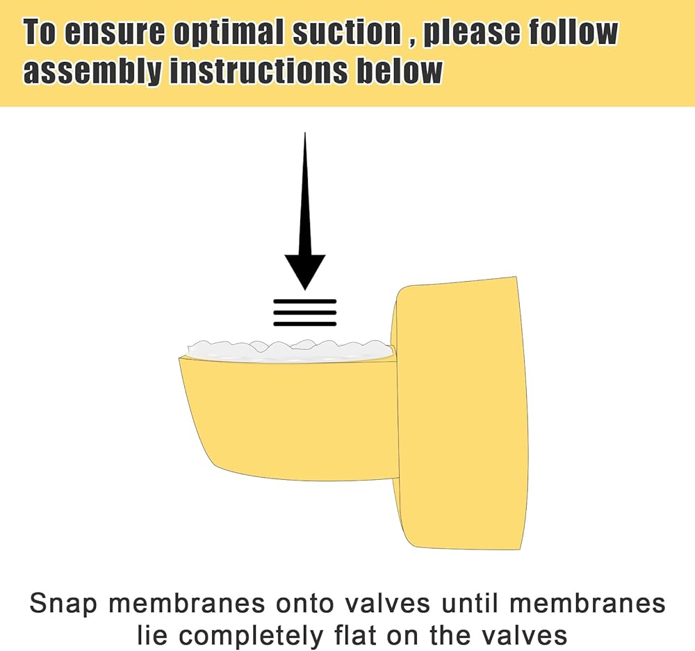 ملحوظة: يرجى ملاحظة أن هذه لا تنطبق على Freestyle Flex وPump In Style Maxflow وSonata وSwing Maxi. عند الاستخدام، قم بتثبيت الغشاء على الصمام حتى يصبح مسطحًا تمامًا على الصمام.