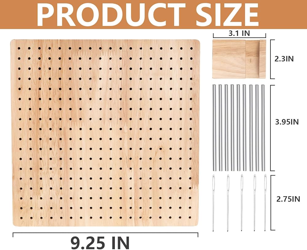 قاعدة خشبية: تأتي لوحة القطع المربعة الخاصة بنا بقاعدة خشبية لمنح الحياكة زاوية مختلفة، مما يوفر راحة ومرونة إضافية أثناء عملية الحياكة.