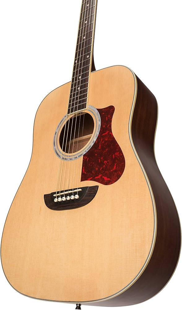 - جيتار صوتي على طراز Dreadnought يتميز بجزء علوي من خشب التنوب وطبقات من الخلف والجوانب من خشب الماهوجني بلمسة نهائية من الساتان الطبيعي