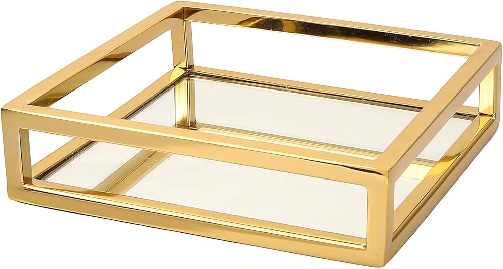 هيكل المواد - هذه الصينية مصنوعة من مواد عالية الجودة. المرآة التي تم وضعها كقاعدة لها تكون لامعة وخالية من الخدوش. يتميز بلمعان جميل يتناسق بشكل مثالي مع الجزء الخارجي المعدني اللامع. امسحي للتنظيف للحصول على بريق منتعش.