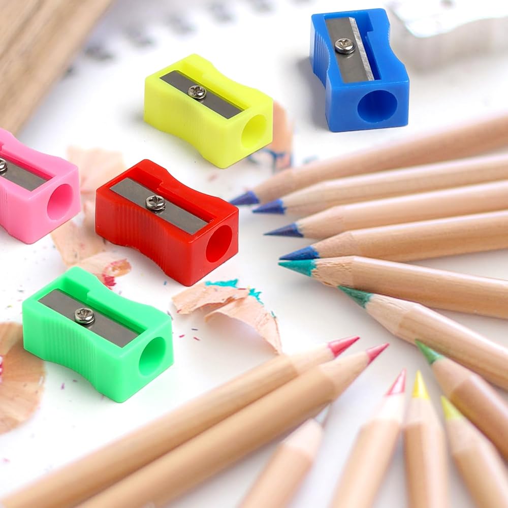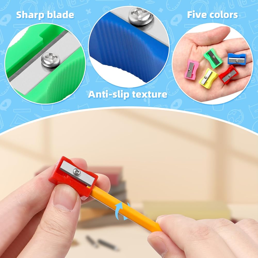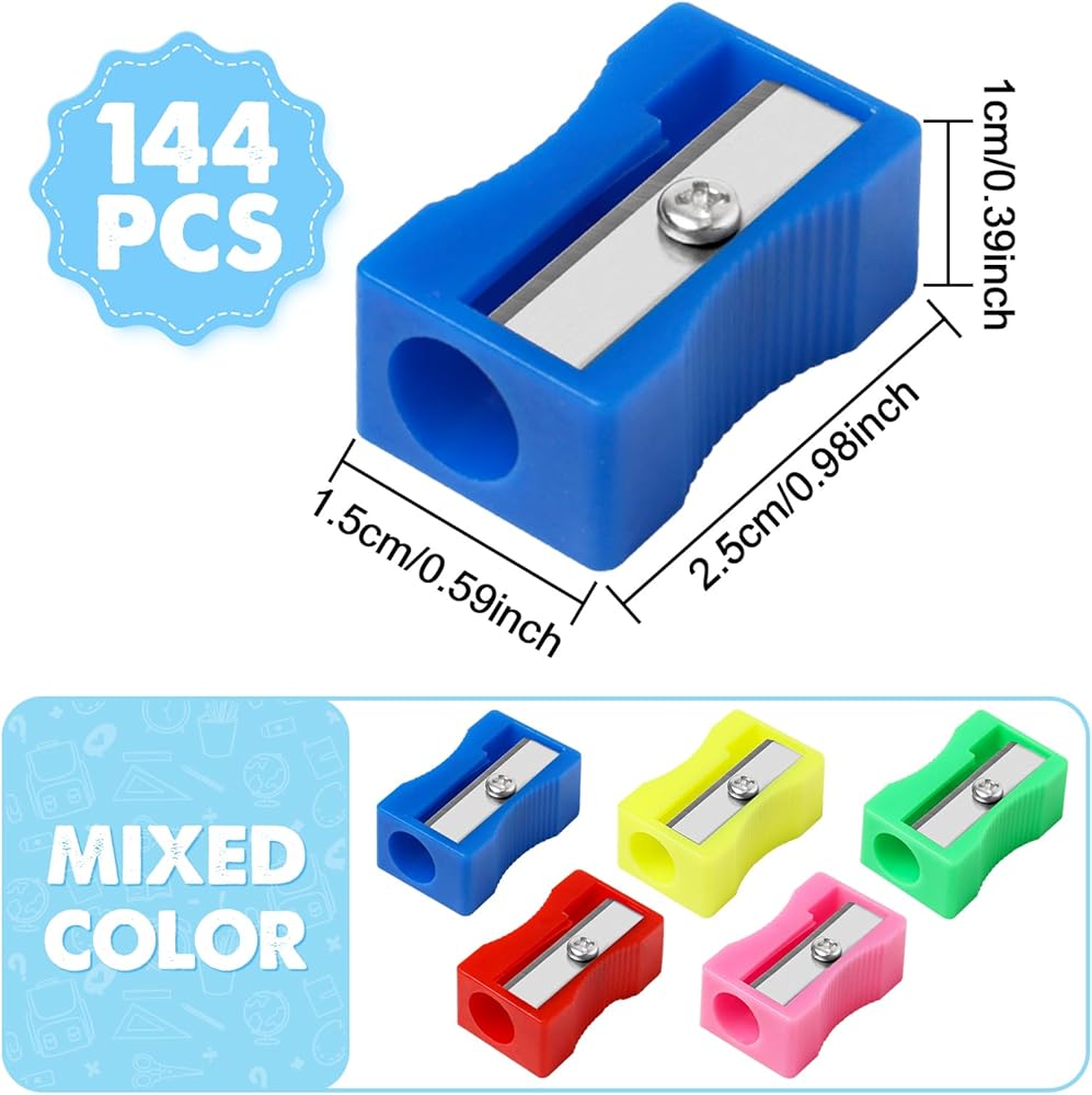 عبوة مكونة من 144 مبراة أقلام رصاص: يتضمن كل طلب 144 مبراة أقلام رصاص يدوية بألوان متنوعة. تشمل الألوان مبراة أقلام رصاص صغيرة باللون الأحمر والأزرق والدبوس والأصفر والأخضر، كما أن شحذ قلم الرصاص أصبح ممتعًا بألوان زاهية.