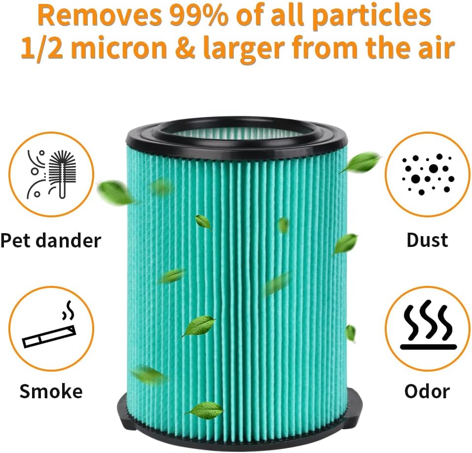 【فلتر من 5 طبقات】: الفلتر مصنوع من 5 طبقات من المواد المصنفة من HEPA ويزيل 99% من جميع الجسيمات 1/2 ميكرون وأكبر من الهواء. بالمقارنة مع الفلتر المكون من طبقة واحدة وثلاث طبقات، فإن هذا الفلتر المكون من 5 طبقات يلتقط نشارة الخشب أو الطابق السفلي النموذجي أو المرآب أو أوساخ السيارة أو غبار الحوائط الجافة أو الرماد البارد أو المساحيق الدقيقة بشكل أكثر فعالية.