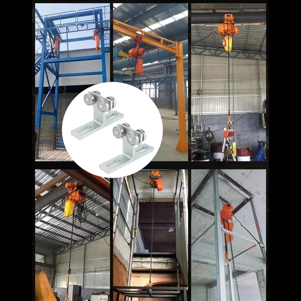 المواصفات: فتحة لوحة فولاذية بقطر 9/16 بوصة (14 مم)؛ سُمك 2/5 بوصة (10 مم)، رائع لتركيب الرافعة الكهربائية، كل مجموعة عربة ذات 4 عجلات توفر دعمًا للوزن يصل إلى 750 رطلًا وهي مناسبة للاستخدام مع عرض 1-5/8 بوصة وجميع 1-5/8 بوصة أو أطول قناة تبختر