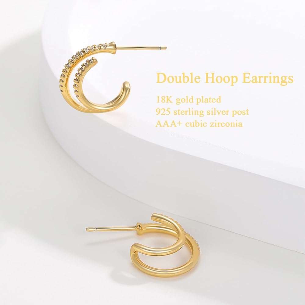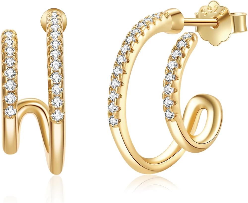 【مادة الأقراط】: الأقراط الذهبية المزدوجة مصنوعة من النحاس ومطلية بالذهب عيار 18 قيراط. مع عمود من الفضة الإسترلينية عيار 925 وسدادة أذن. لا يسبب الحساسية، خالي من الرصاص، خالي من النيكل، آمن للارتداء.