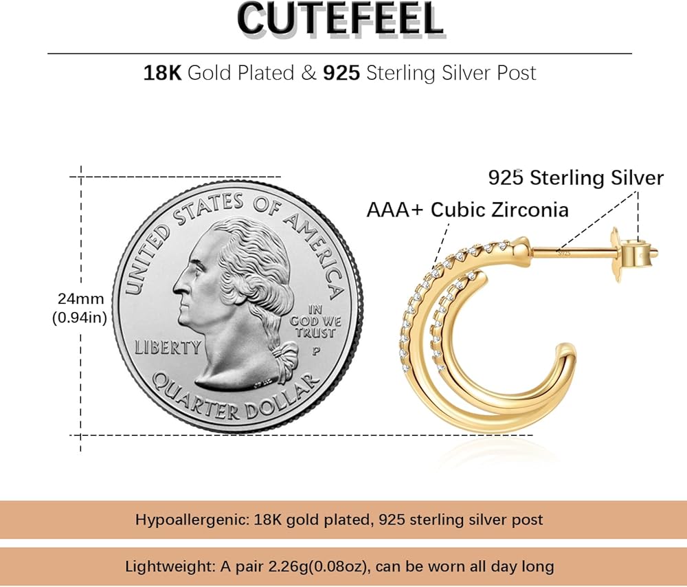 【تصميم فريد】: يمكن لثقب واحد أن يتمتع بتأثيرين للارتداء، تصميم الطوق الكبير والصغير أكثر ملاءمة لمحيط الأذن، والزركون عالي الجودة يجعله أكثر لمعانًا، مما يلبي احتياجات الثقوب المتعددة.