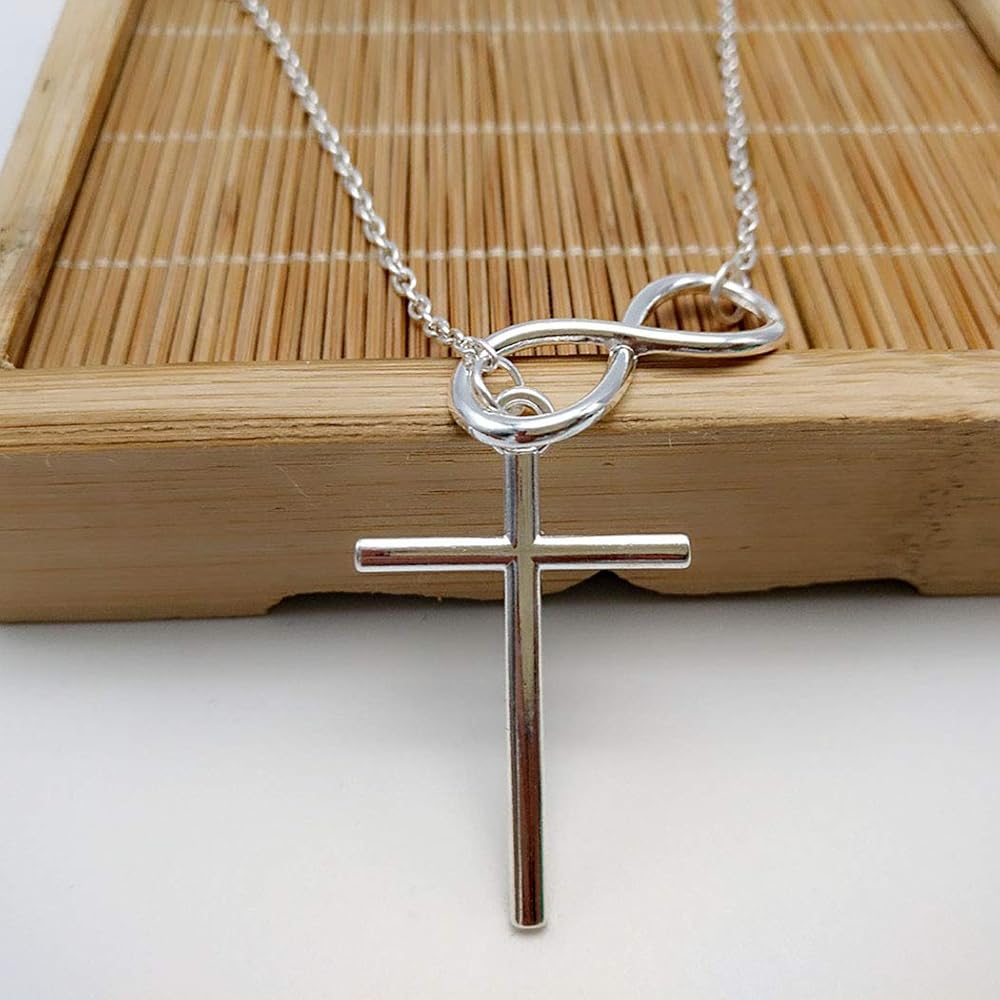 قلادة إنفينيتي كروس بطول السلسلة 18 بوصة + 2 بوصة، يمكن تعديل السلسلة. للنساء، خفيف وقوي بما يكفي للارتداء اليومي.