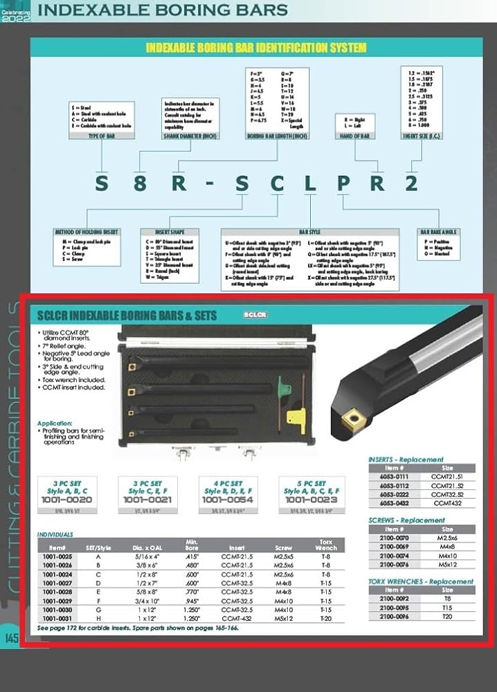 • 3/8" ساق S-SCLCR6-2 شريط مملة قابل للفهرسة مع إدراج