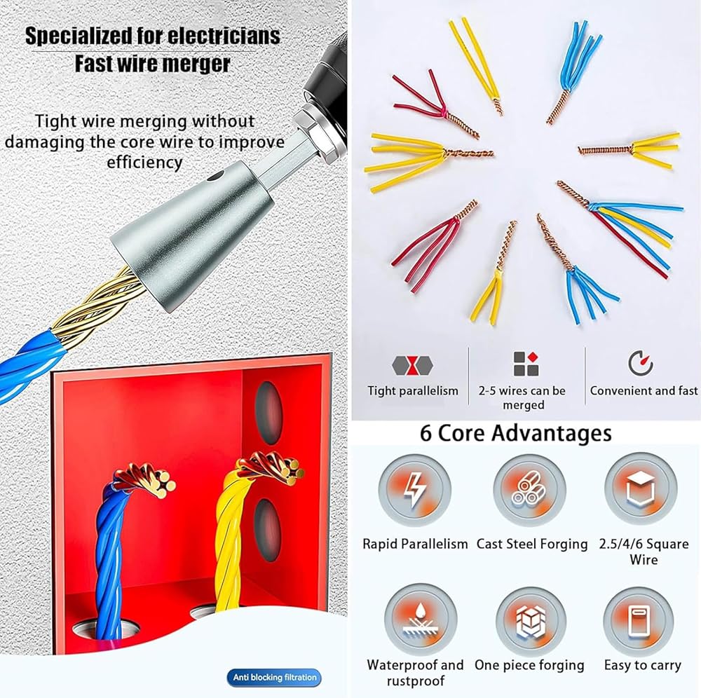 🧰🔩(توافق واسع): أداة لف كهربائية متخصصة لأسلاك 1.5/2.5/4/6 مليمتر مربع، وتوفر وظائف متوازية 2-6 اتجاهات، وتتحمل أكثر من 35,000 لف، مريحة للغاية، ومتينة بما يكفي لتحمل قسوة الاستخدام اليومي.
