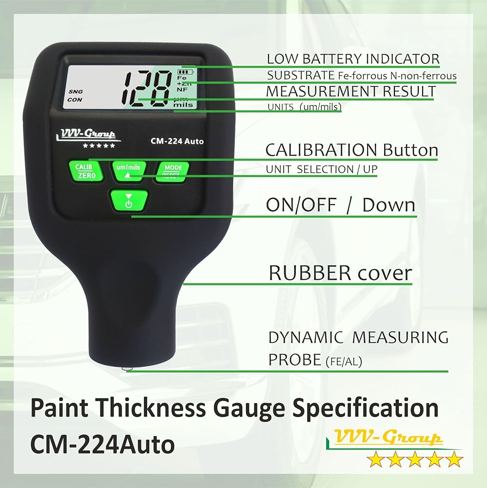 أفضل مساعد - سيكون مقياس السُمك هذا مساعدًا لا غنى عنه لفحص السيارة. مقياس سمك بسيط وسريع ومريح مصمم لتقييم حالة جسم السيارة بدقة وسرعة وتحديد الأجزاء التالفة.
