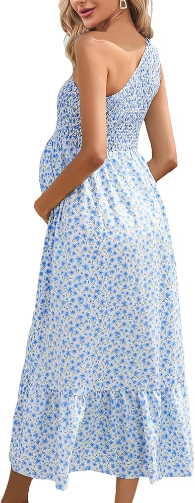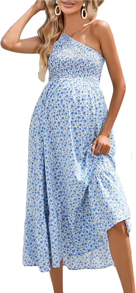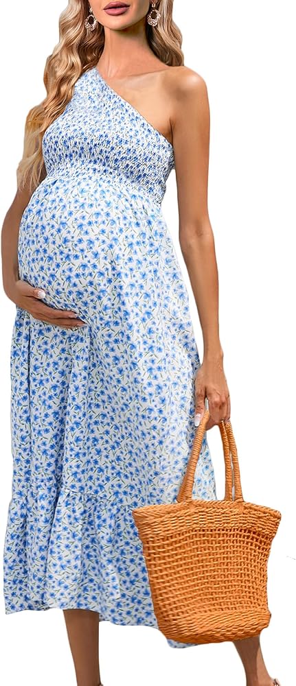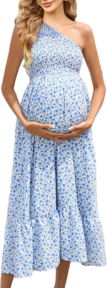المواد: فساتين الحمل بكتف واحد مصنوعة من 97% بوليستر، 3% ألياف لدنة، القماش ناعم جدًا، مريح، صديق للجلد، مسامي وجودة، مناسب للصيف. سيمنحك فستان الأمومة ذو التصميم البسيط تجربة ارتداء مريحة. فستان الأمومة العتيق هذا مناسب لجميع مراحل الحمل وبعد الولادة.