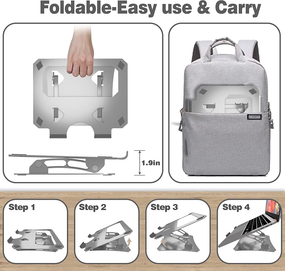 • 【قوي ومحمول】حامل الكمبيوتر المحمول القابل للتعديل هذا مصنوع من سبائك الألومنيوم الممتازة، وهو قوي ولا تقلق بشأن الاهتزاز. يضمن المطاط ثبات الكمبيوتر المحمول الخاص بك على الحامل ويمنع أي خدوش. علاوة على ذلك، يمكن للهيكل القابل للطي لحامل الكمبيوتر المحمول هذا أن يتناسب بسهولة مع حقيبة الكمبيوتر المحمول أو حقيبة الظهر للسفر ورحلات العمل واصطحابه معك.