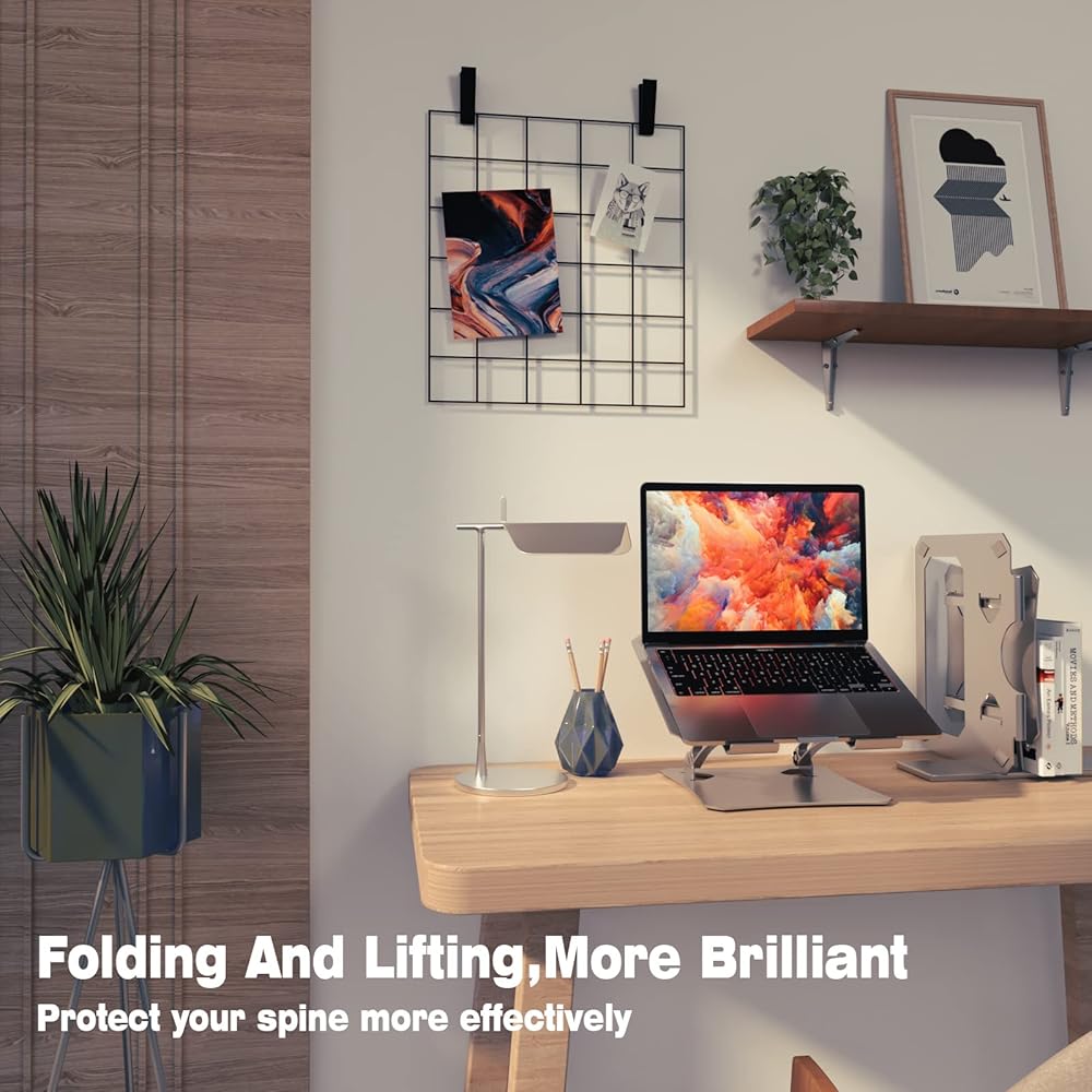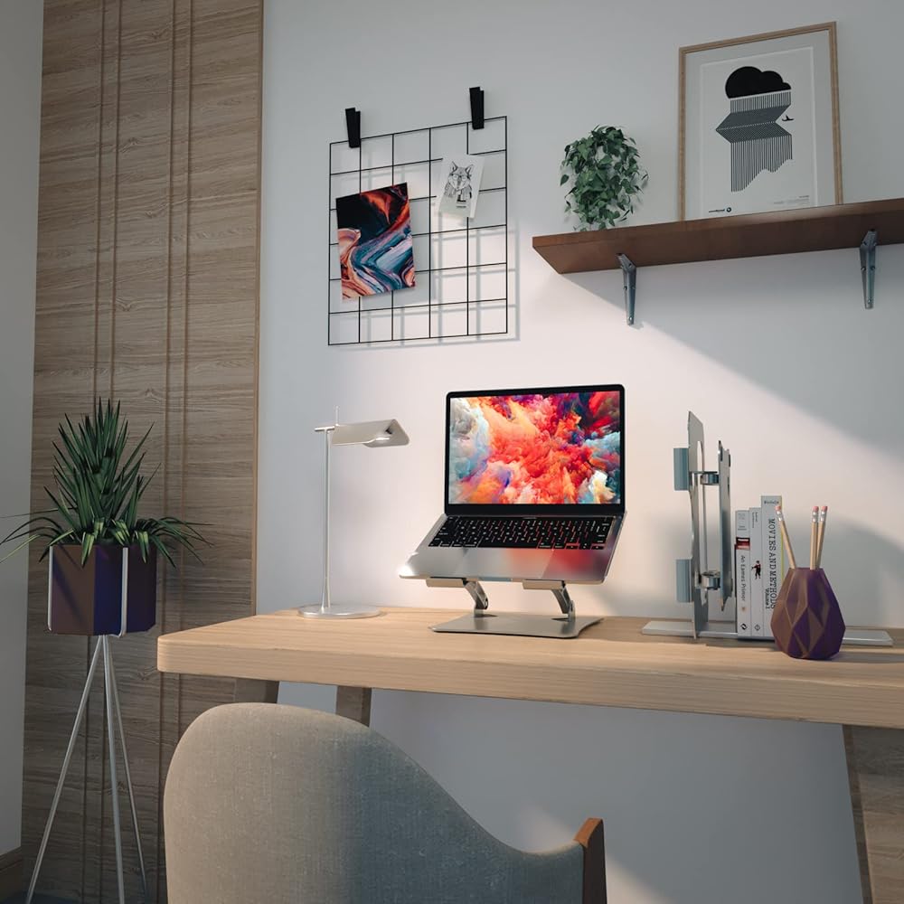 حامل كمبيوتر محمول للمكتب، حامل كمبيوتر محمول قابل للتعديل، حامل كمبيوتر محمول 17 بوصة، حامل كمبيوتر لأجهزة الكمبيوتر المحمولة مقاس 10 إلى 17 بوصة، أفضل شريك للمكتب، إنقاذ داء الفقار العنقي (فضي)