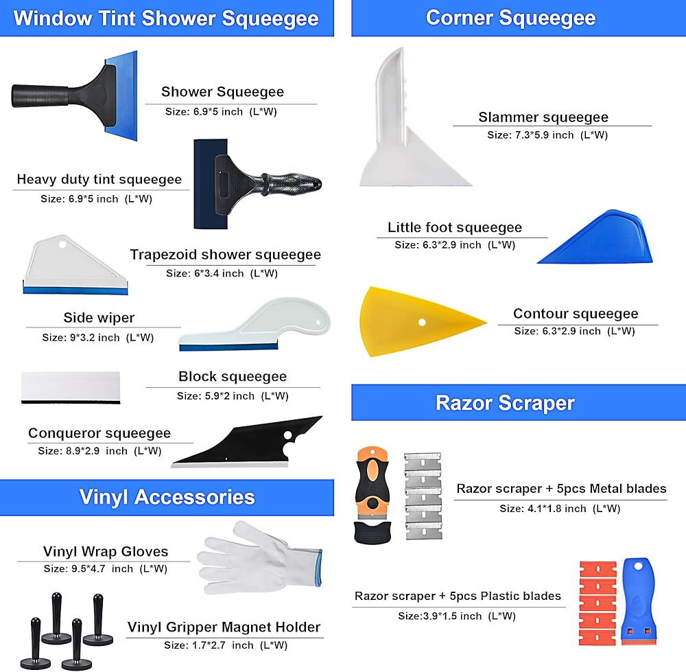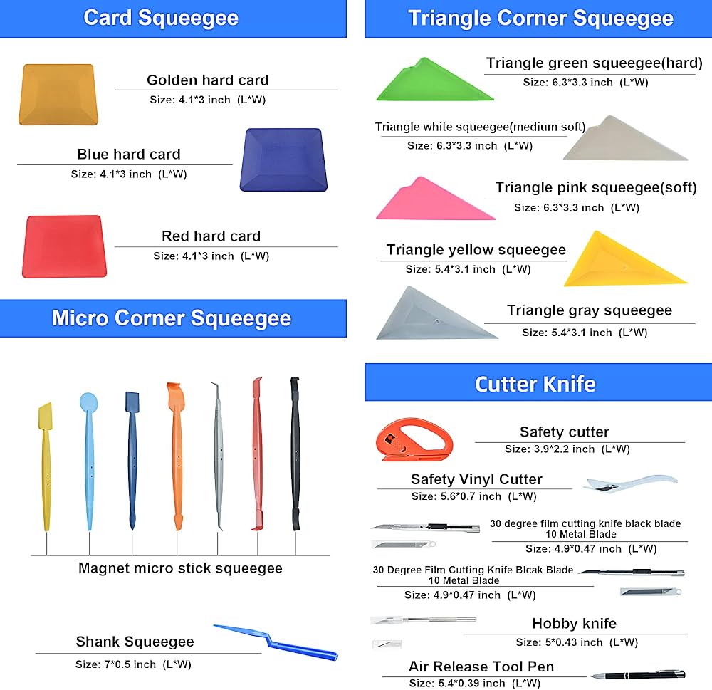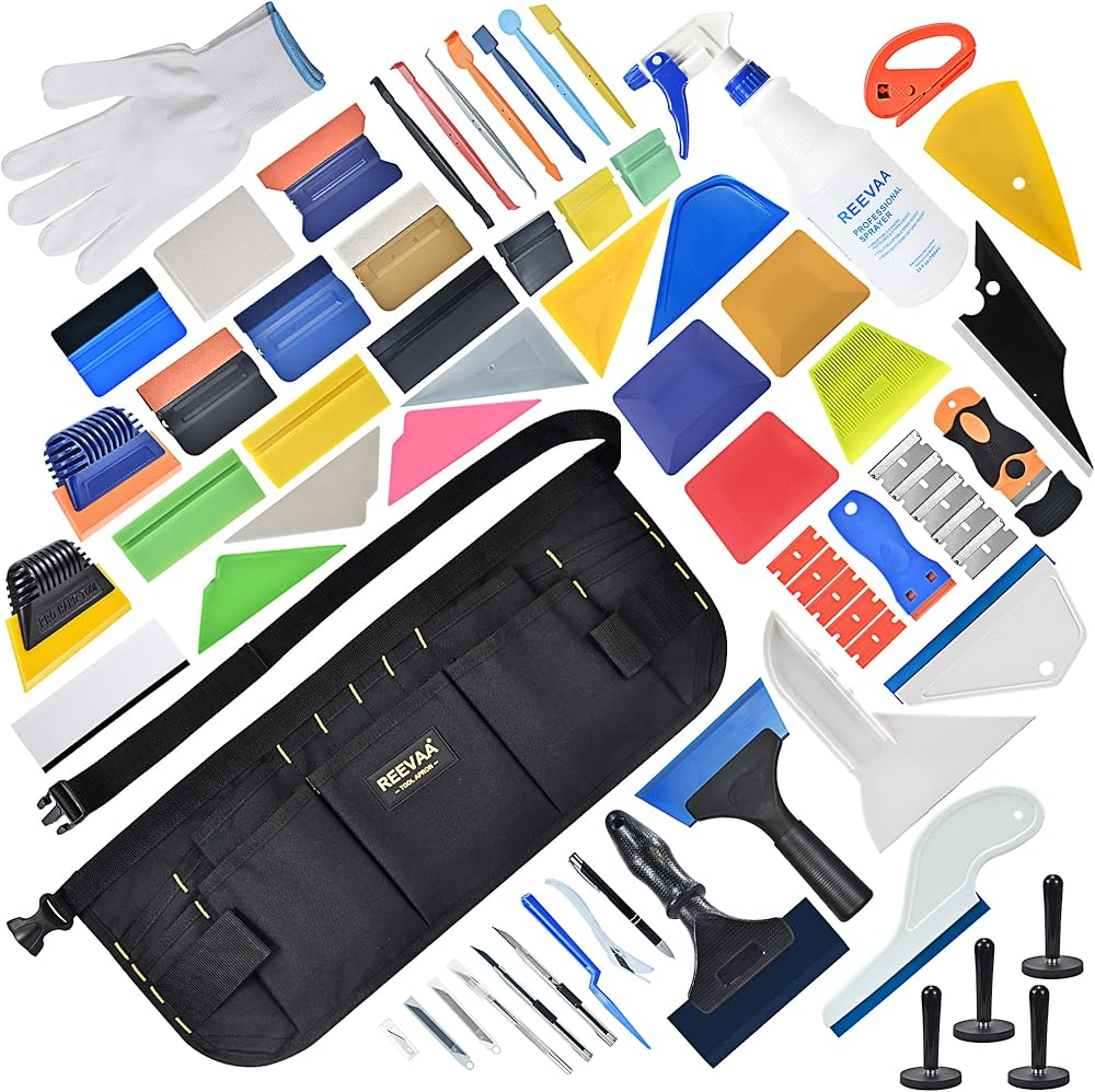 [مجموعة أدوات تغليف وتلوين مفيدة على نطاق واسع مكونة من 55 قطعة] تُستخدم أدوات تغليف الفينيل للسيارة على نطاق واسع في تظليل نوافذ السيارة، وتطبيق أغلفة الفينيل، وتركيب أفلام حماية الطلاء، وورق الحائط، وتركيبات أفلام خصوصية النوافذ. مجموعة تغليف الفينيل مناسبة للمركبة أو العائلة أو المرآب أو المكتب أو المستودع.