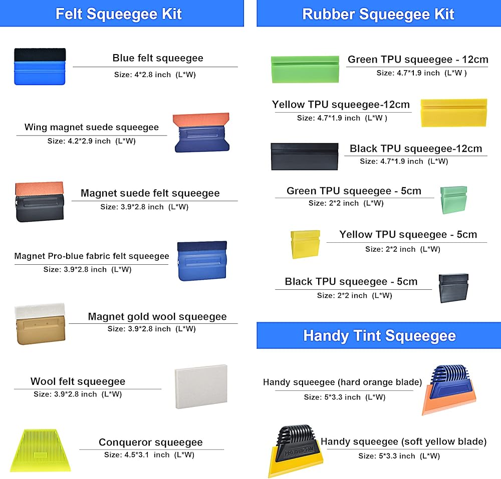 [مجموعة ممسحة PPF احترافية] تحتوي كل مجموعة أدوات فيلم حماية الطلاء على 6 قطع ممسحة مطاطية (3 قطع 5 بوصة و3 قطع 2.7 بوصة) بصلابة مختلفة وألوان مختلفة، وقطعتين ممسحة ملونة PPF سهلة الاستخدام. مع الأخذ في الاعتبار كل تفاصيل تثبيت التطبيق، فإن كل منتج له دوره الفريد، بدءًا من التنظيف وحتى التثبيت، مما يساعدك على إكمال عملية العمل بأكملها، ويجعل عملك أسهل.