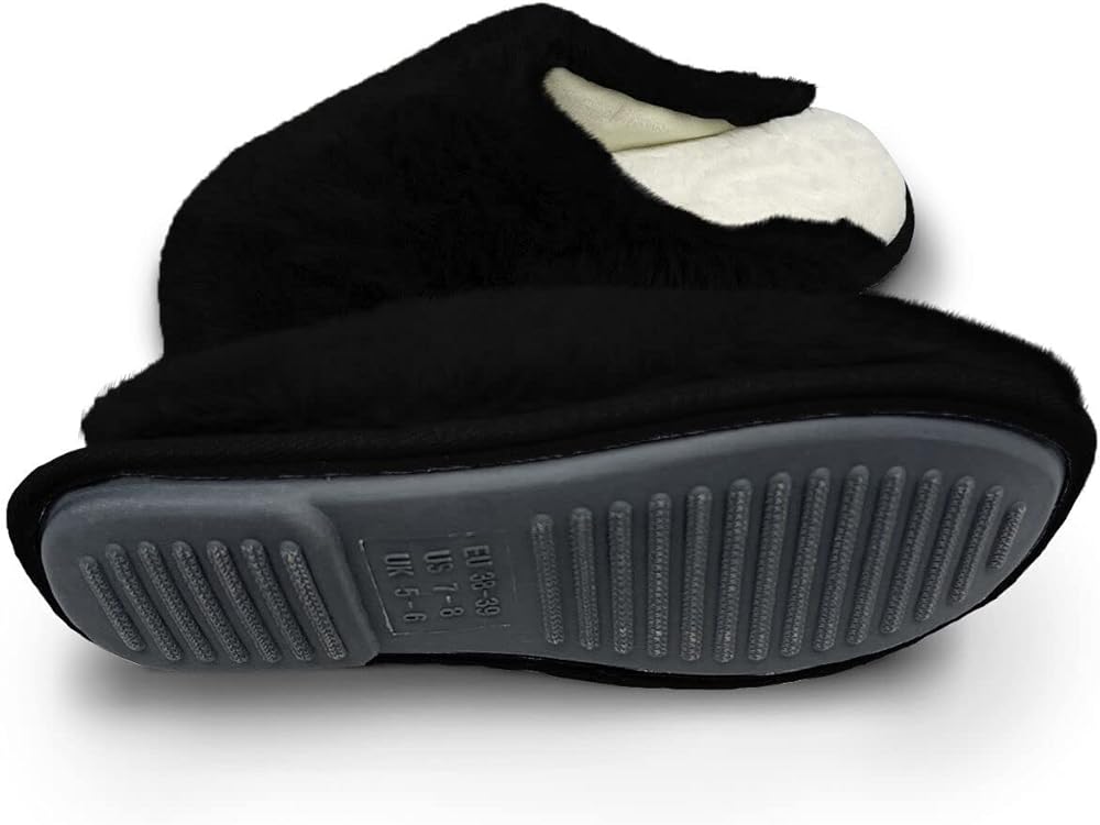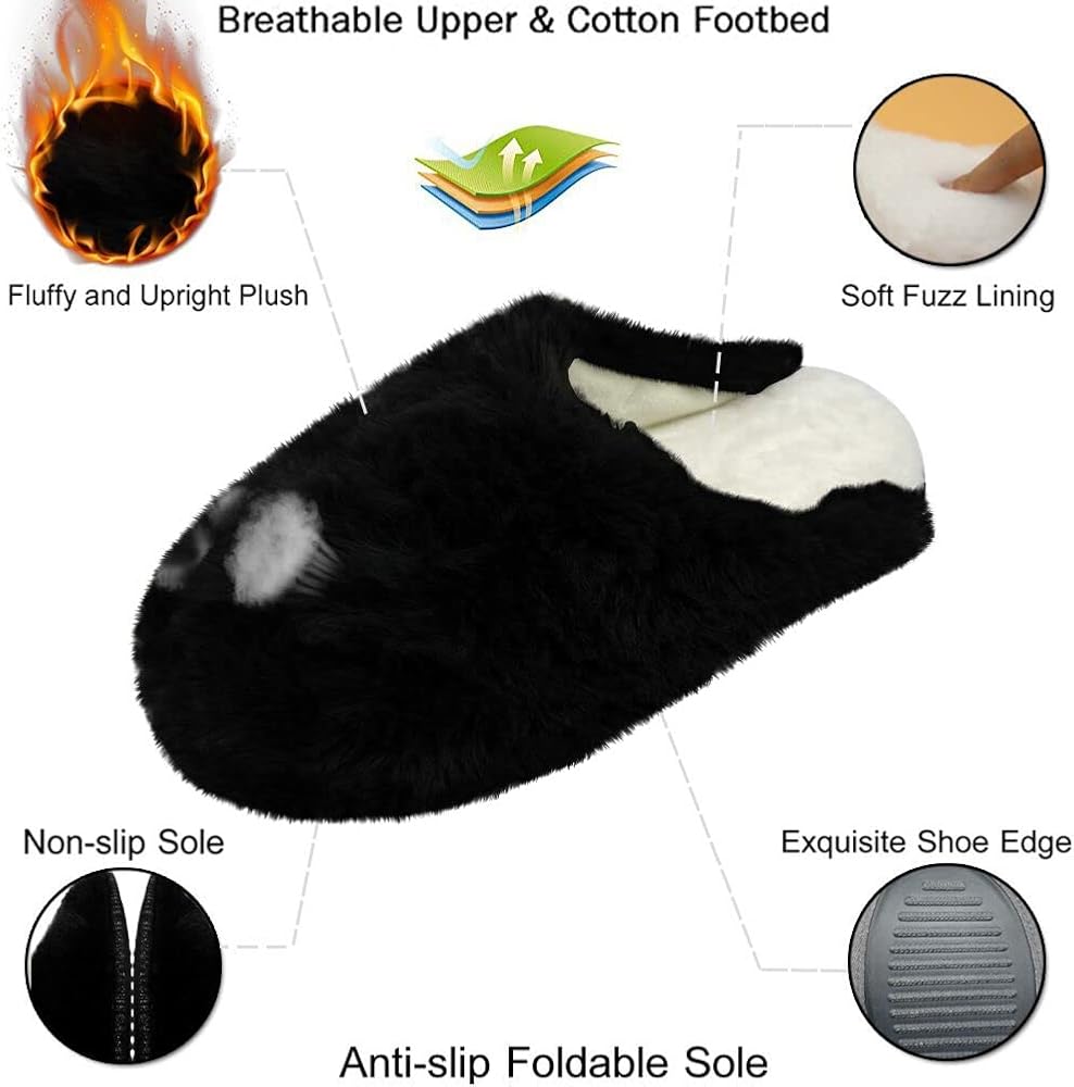 ❄نعل داخلي دافئ وإسفنج ميموري: بطانة قطنية غامقة عالية الجودة: ثابتة ولا تفقد الوبر. بطانة من الفلانيل الناعمة الدافئة ومريحة للغاية يمكن أن تضمن أقصى قدر من الراحة والدفء. في الشتاء البارد، دع هذا الشبشب المنزلي يلتف قدميك ويمنحك الدفء المستمر.
