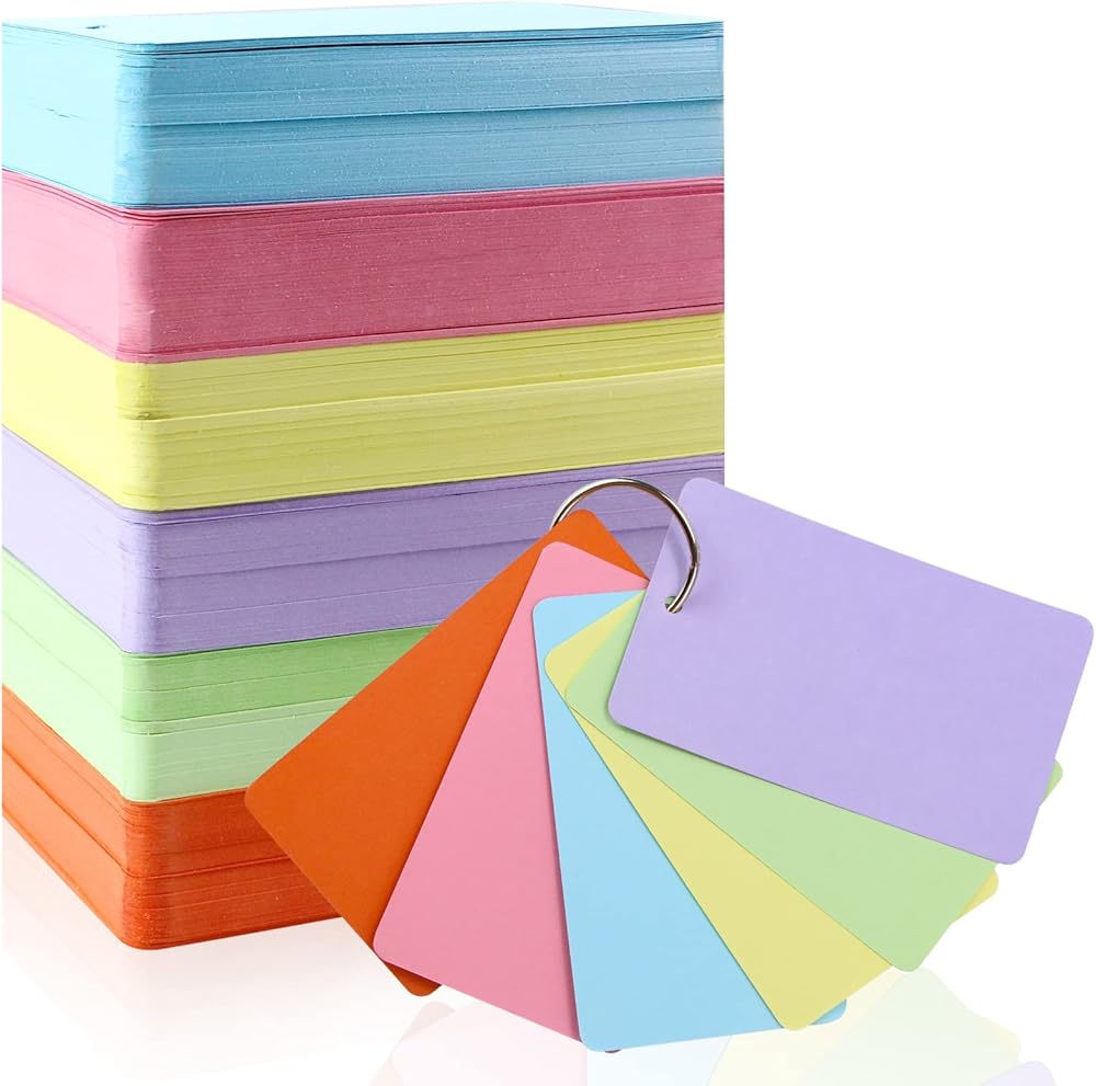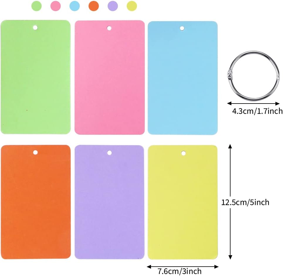 • مجموعة بطاقات الفهرس: تتضمن العبوة 600 ورقة بطاقات فلاش فارغة ملونة مع حلقات (10 قطع)، تأتي في 6 ألوان مختلفة، 100 قطعة لكل لون، بطاقات ملاحظات دراسية ذات قيمة رائعة.