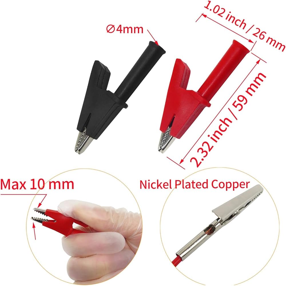 【قابس الموز لكابلات مشابك التمساح】 مشابك التمساح النحاسية. قابس الموز القياسي 4 مم. 5 ألوان مختلفة لسهولة التعرف عليها. 39.37 بوصة/1 متر طول.