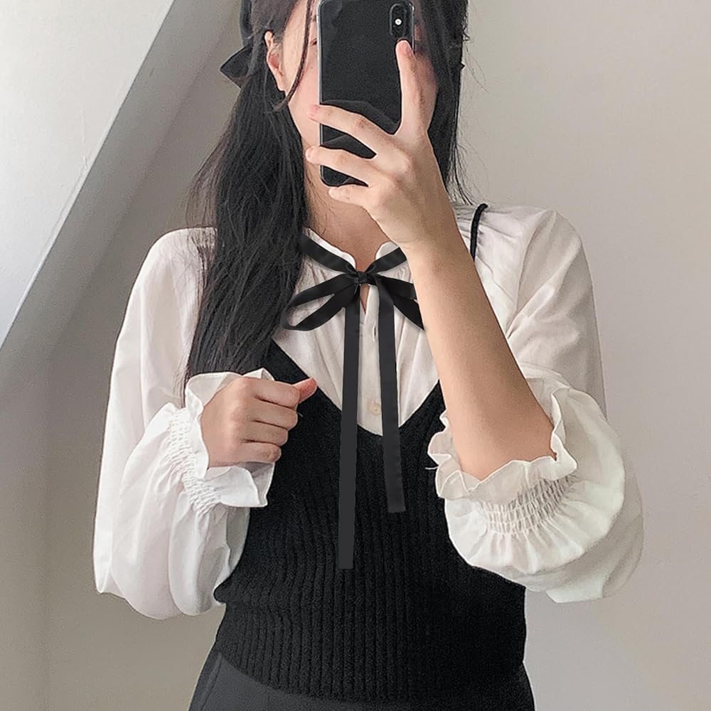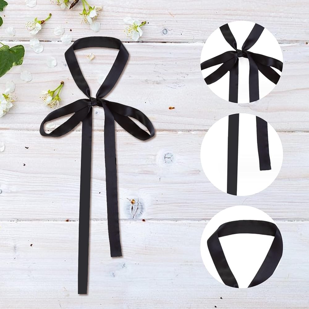 【ربطة عنق ذاتية الربط للنساء】يبلغ مقاس ربطة العنق السوداء للنساء تقريبًا. 160 سم/ 62.3 بوصة في الطول و2.5 سم/0.98 بوصة في العرض، طويلة بما يكفي لربط قوس جميل، يمكن استخدام ربطة العنق النسائية كربطة عنق طويلة أو ربطة عنق أو وشاح للرقبة أو عصابة رأس أو لفافة شعر، إلخ.