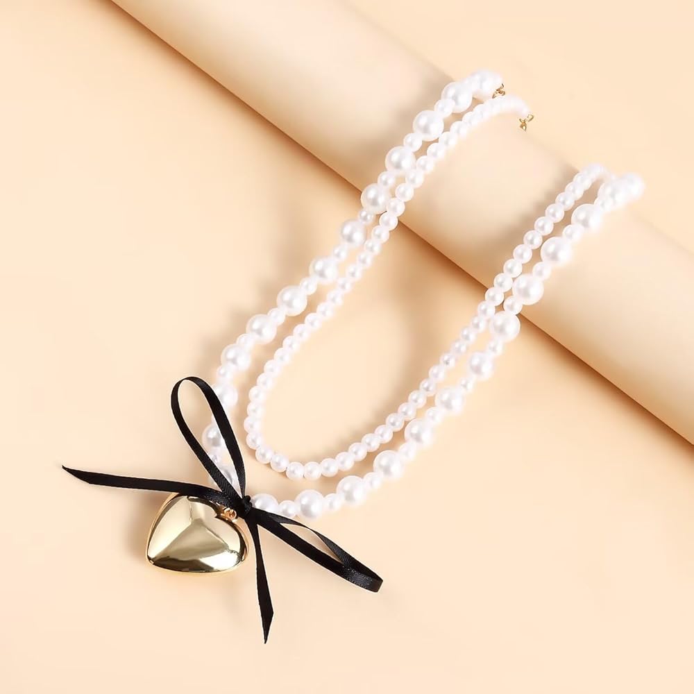المواد: سوف تحصل على قطعتين من قلادة اللؤلؤ المقلد، فهي مصنوعة من اللؤلؤ الصناعي عالي الجودة، وهي متينة وليس من السهل أن تتلاشى ولا تؤذي الجلد.