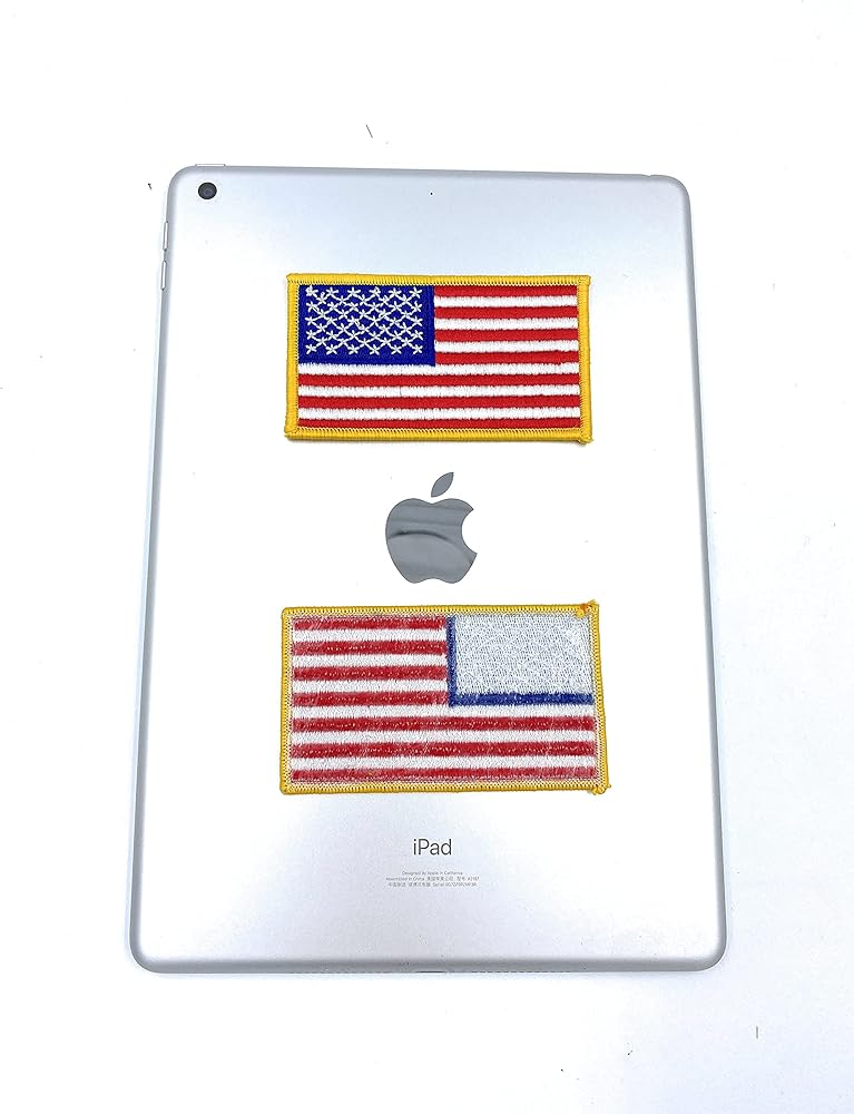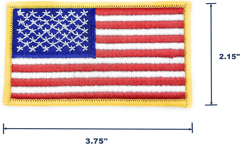 - يمكن كيها على الرقع بشارة علم الولايات المتحدة الأمريكية بالحجم العادي - 3.75 × 2.15 بوصة.