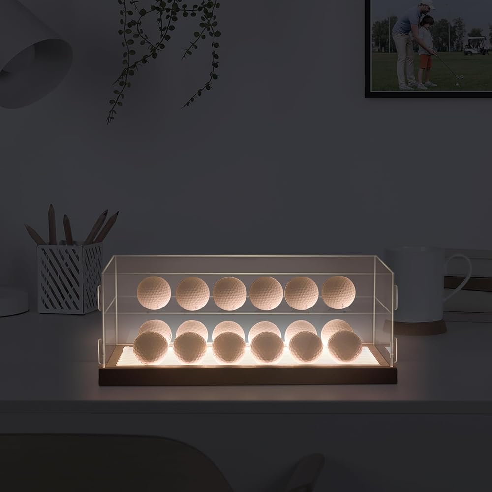 حافظة عرض كرة الجولف المضيئة: حافظة كرة الجولف مصنوعة من قاعدة خشبية مع أكريليك شفاف مضاد للبهتان. حامل عرض كرة الجولف المصمم حديثًا مزود بإضاءة LED يمكن أن يسلط الضوء على كرات الجولف العزيزة التي لا تنسى. (ملاحظة: كرات الجولف غير متضمنة.)