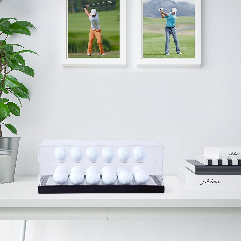 حافظة عرض كرة الجولف لعدد 18 كرة، حامل كرة جولف من الأكريليك الشفاف، صندوق عرض للحماية من الأشعة فوق البنفسجية، حامل عرض بقاعدة خشبية لتذكارات كرات الجولف القابلة للجمع