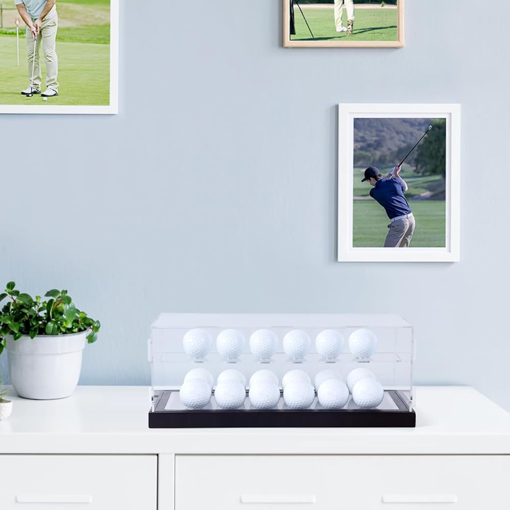 ذكريات جديرة بالاهتمام في حقيبة خفيفة: صندوق كرات الجولف مزود بحماية من الأشعة فوق البنفسجية وأكريليك فائق الوضوح، ويحمي مجموعتك من الغبار. تحتوي على فتحات لمنع كرات الجولف من الانزلاق. حافظة عرض كرة الجولف الأكريليك تمنع كرات الجولف الموقعة من التلاشي.