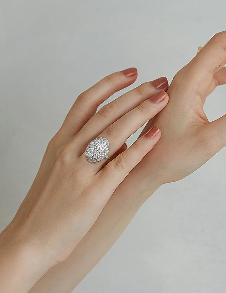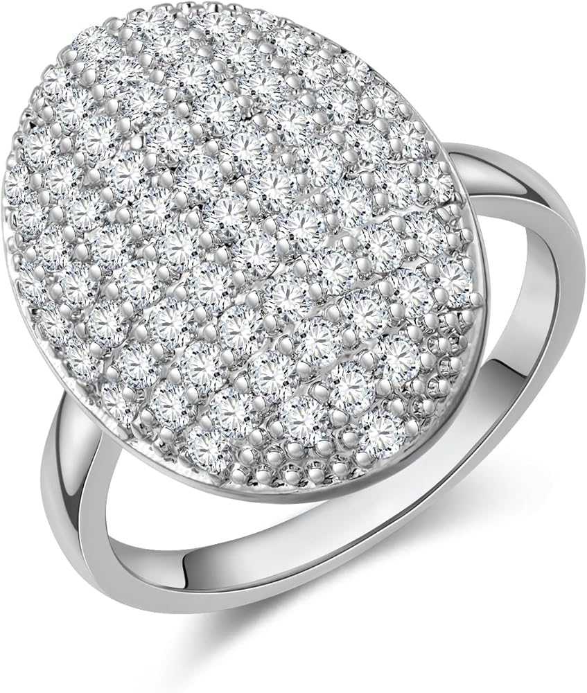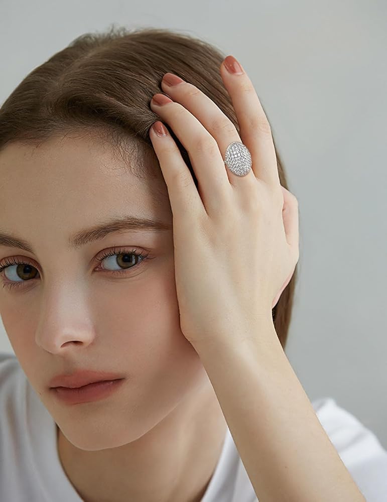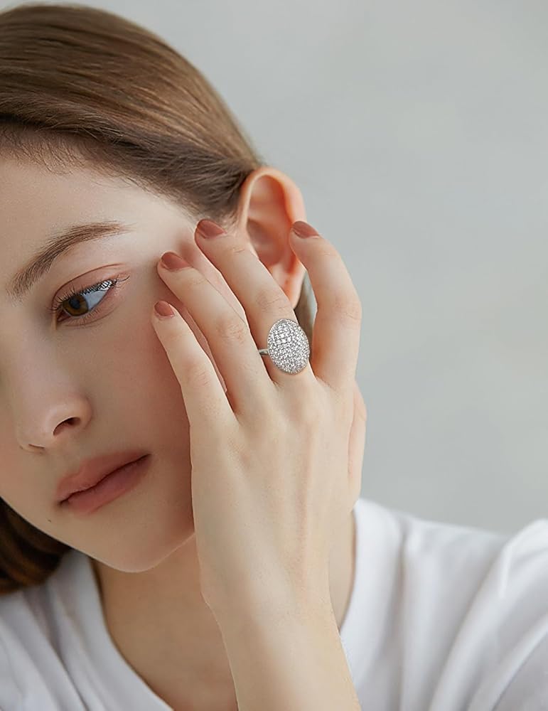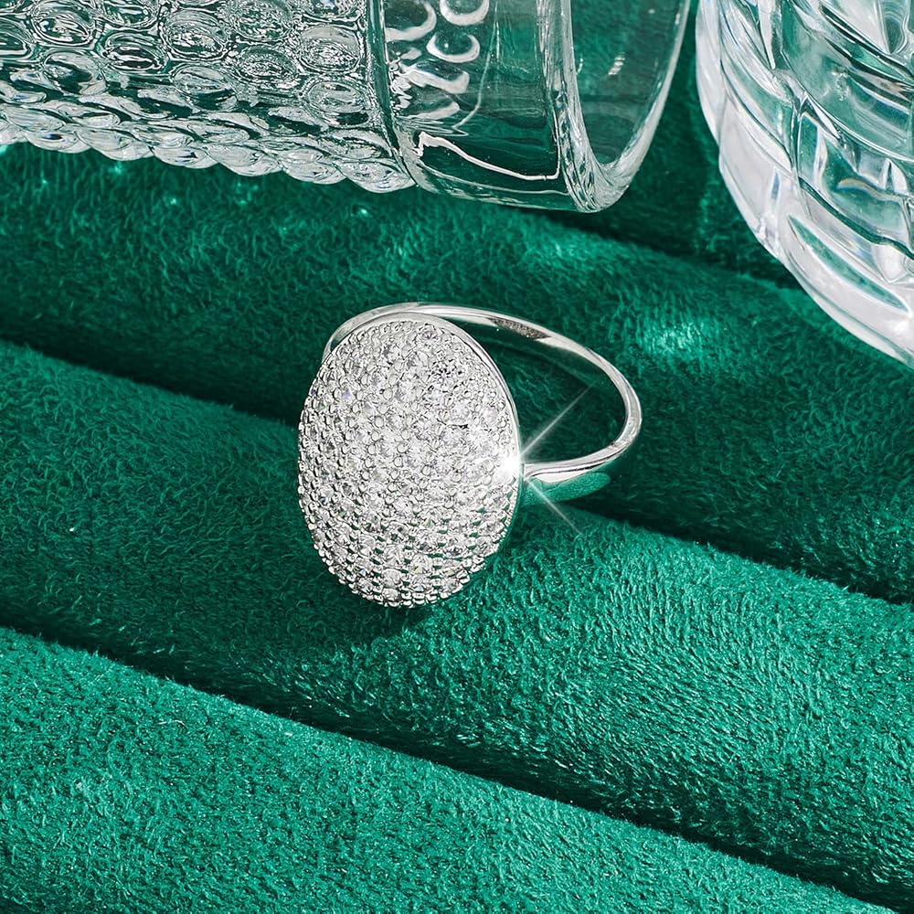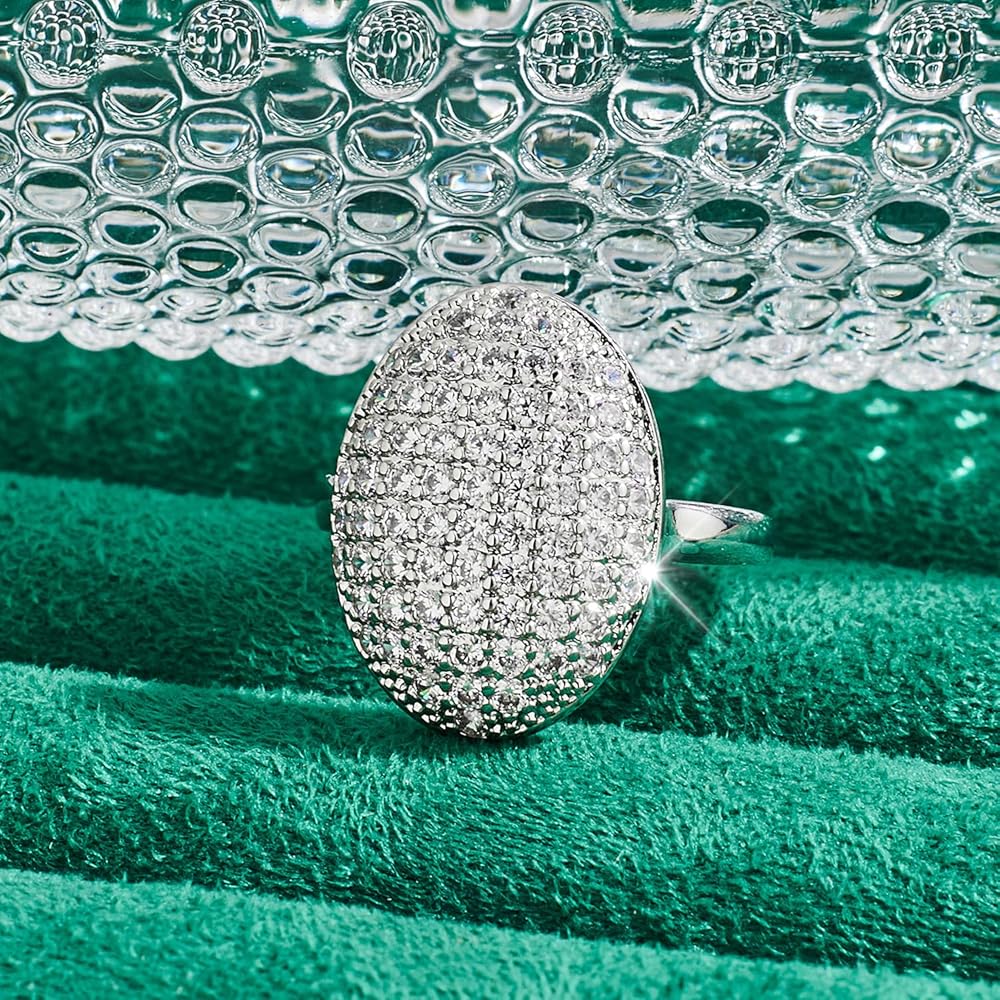 • تصميم فريد من نوعه: ارفع من أناقتك مع هذا الخاتم الفضي الرائع، المصنوع من البلاتين الفاخر. الشكل نصف البيضاوي، المزين بعدد كبير من الزركون المتلألئ، ينضح بالرقي والسحر. يوفر لك خاتم الزواج الفاخر هذا إمكانيات لا حصر لها.