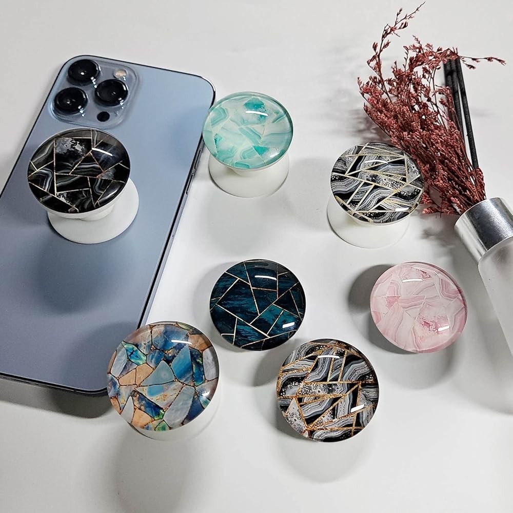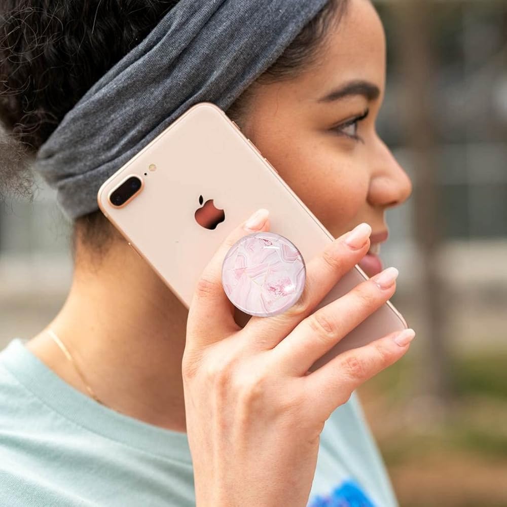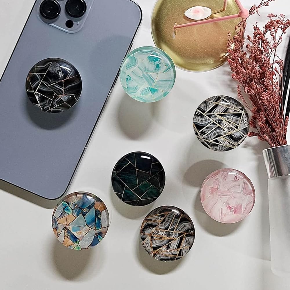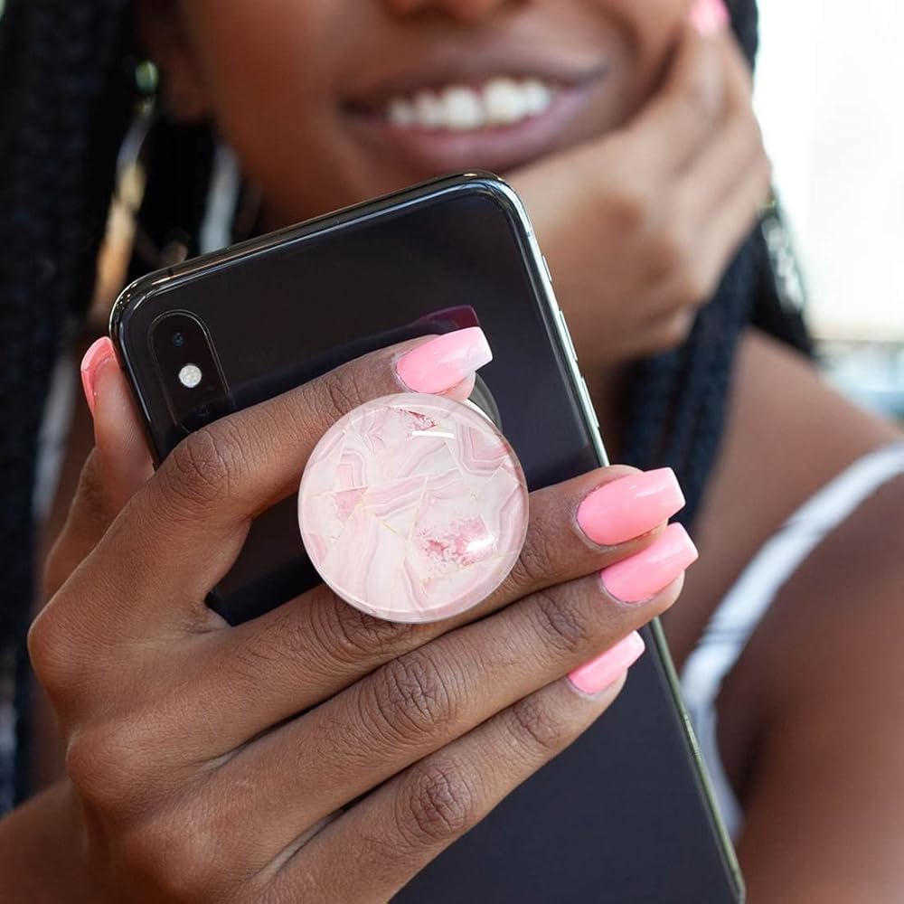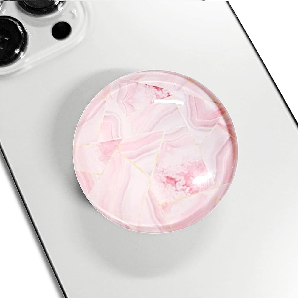 قبضة هاتف محمول لامعة شفافة، تصميم هندسي من الرخام الوردي الذهبي الوردي، حامل قابل للتوسيع للهاتف الخلوي، حامل قابل للطي للهواتف