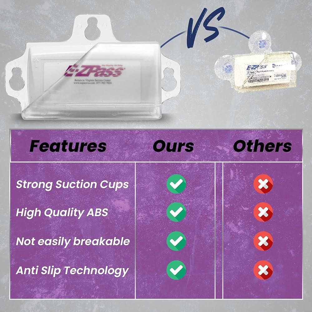 • مجموعة مكونة من 4 قطع - يشتمل كل حامل iPass على حامل كأس شفط و3 أكواب شفط قوية حتى تتمكن من نقل جهاز EZ Pass Transponder بين العائلة أو السيارات المستأجرة. يبقى حامل المرور السهل للزجاج الأمامي مثبتًا بقوة في المناخات الساخنة والباردة.