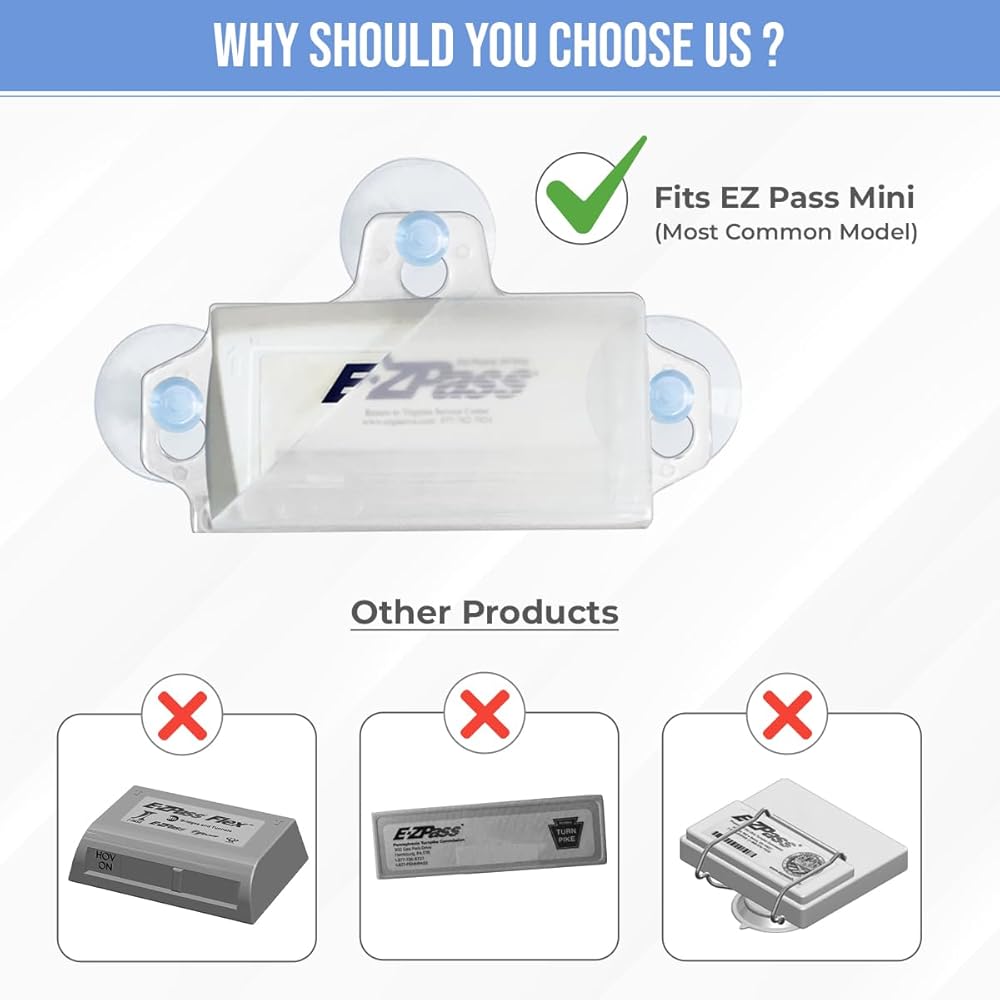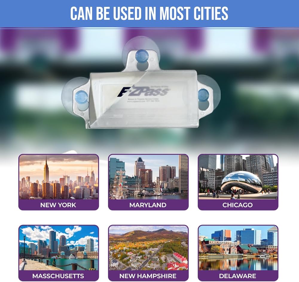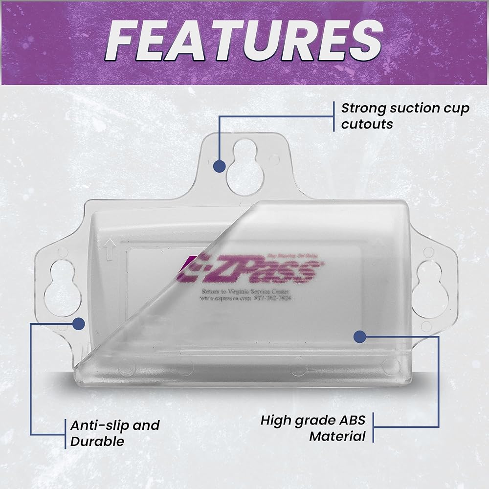 • متوافق على نطاق واسع - يعمل حامل المرور مع EZ Pass وiPass وأجهزة الإرسال ذات الحجم المماثل لديلاوير وماين وماريلاند وماساتشوستس ونيو هامبشاير وأوهايو وبنسلفانيا وفيرجينيا والولايات الأخرى.