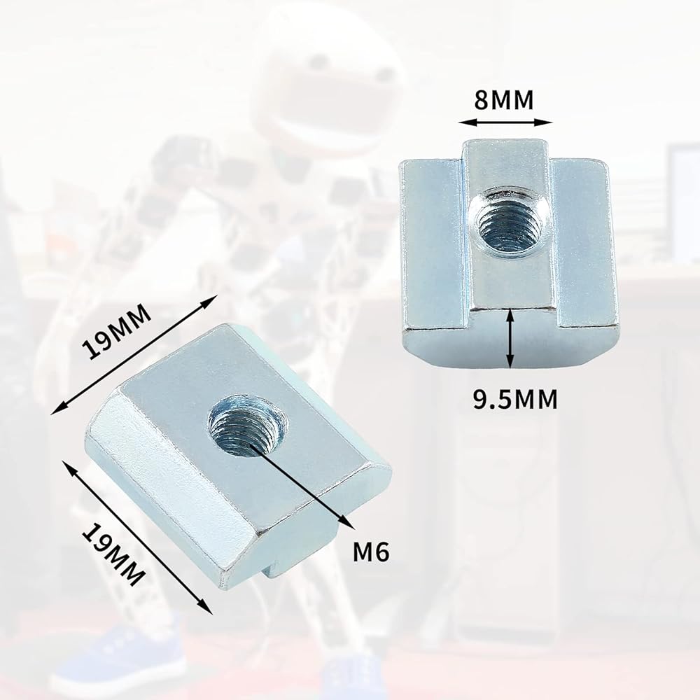 【ما ستحصل عليه: 8 × صواميل منزلقة، الطول 20 مم، الارتفاع 9.5 مم، العرض 19.5 مم، عرض الفتحة: 8 مم، قطر الخيط: M3.