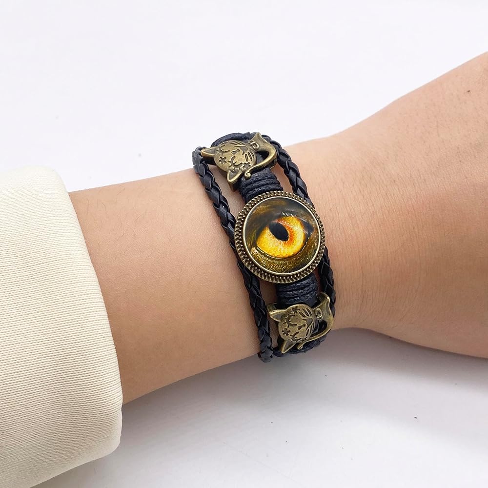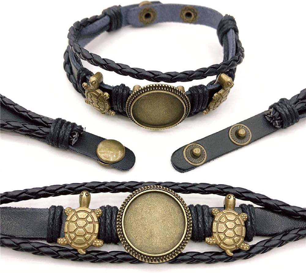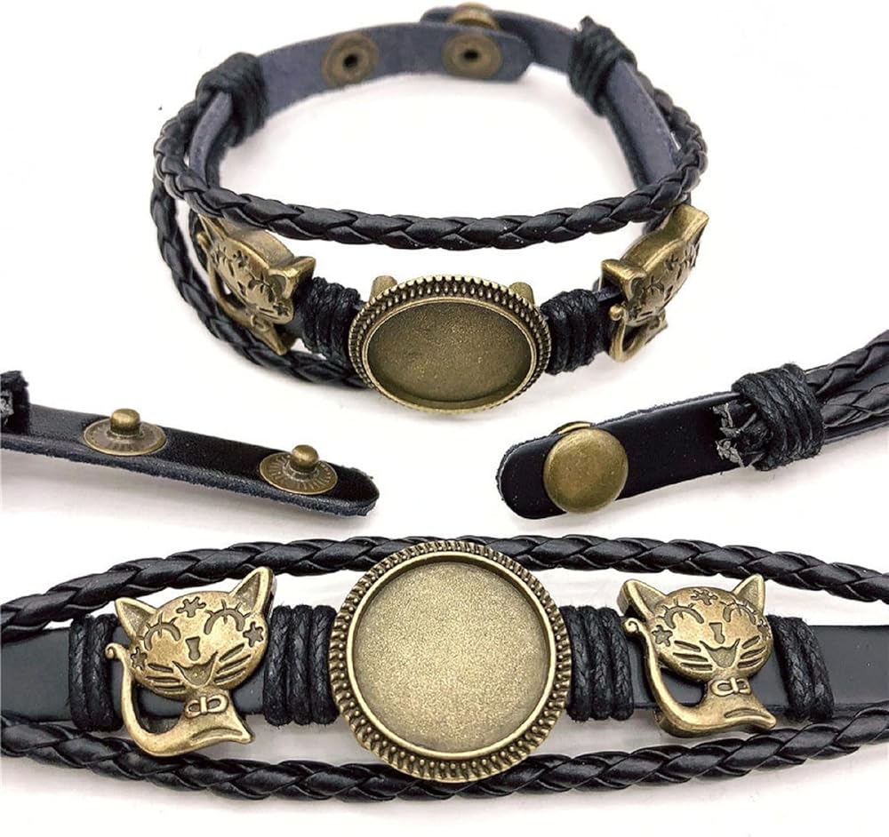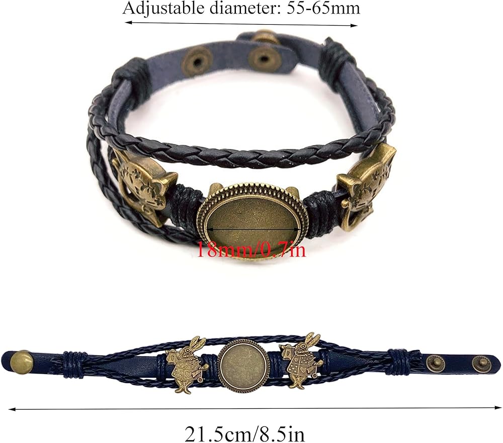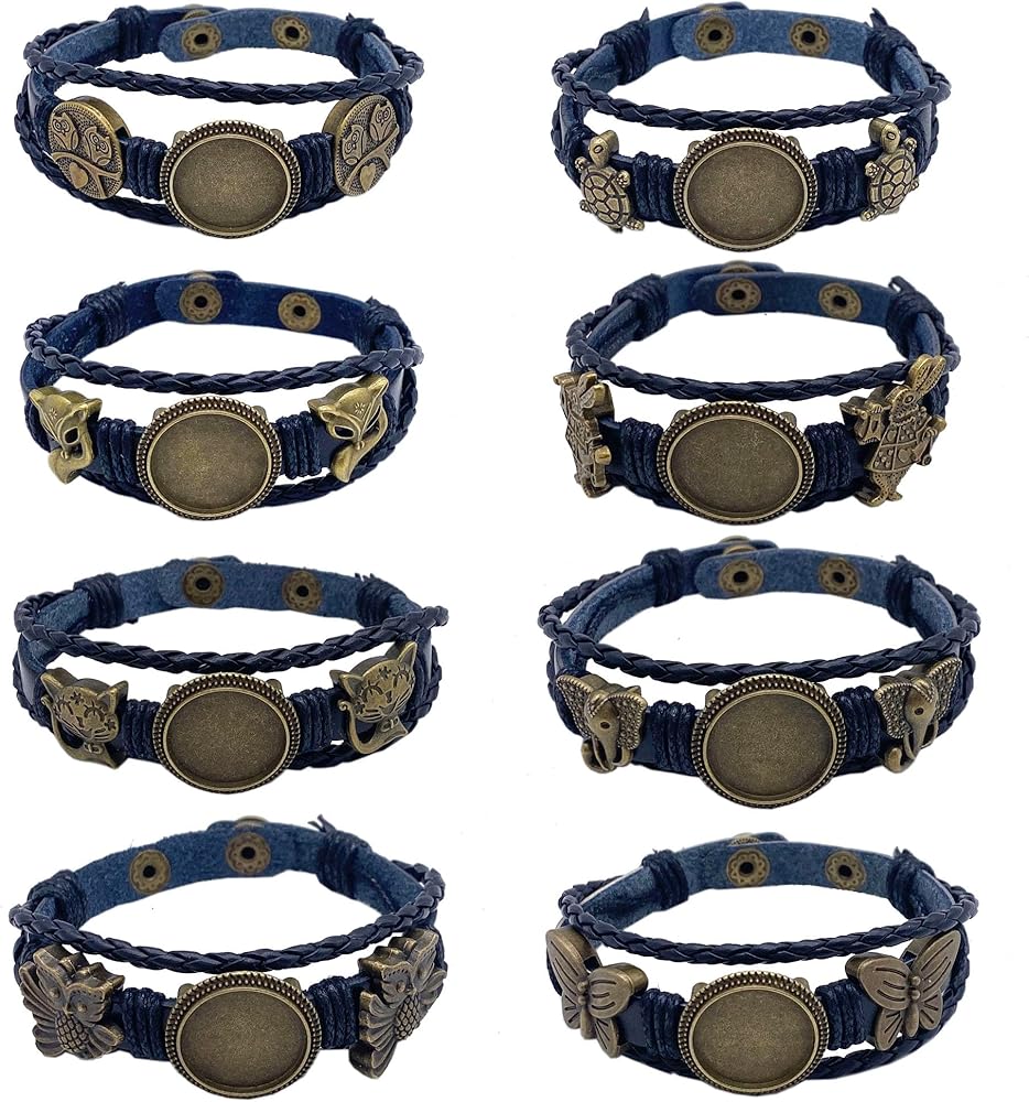 مياو جين 8 قطع سوار جلدي مضفر صنع عدة 18 ملم فارغة جولة كابوشون الحافة صينية زر ضبط جلدي متعدد الطبقات حبل سوار الكفة سوار معصم للصناعة اليدوية (أشكال مختلطة)