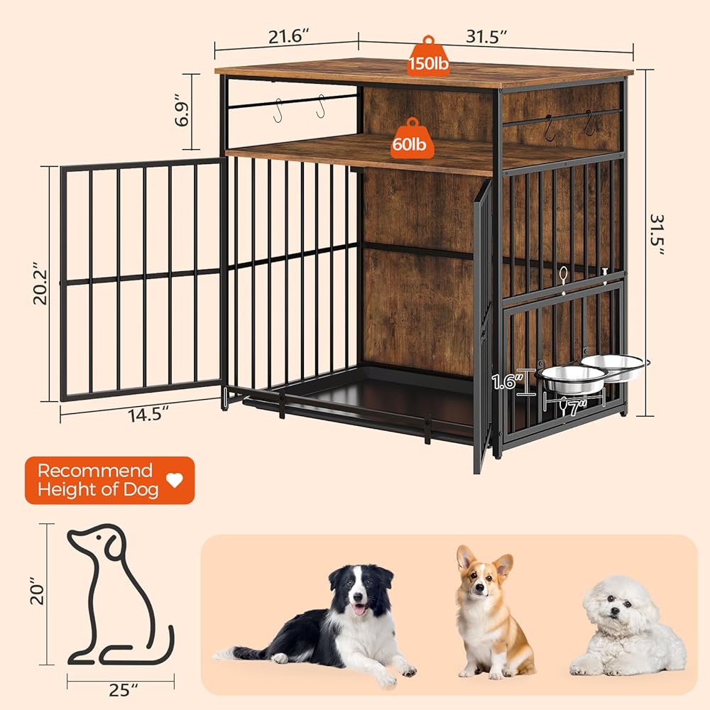 الحجم الصحيح: قياس 31.5 بوصة طول × 21.6 بوصة عرض × 31.5 بوصة ارتفاع، قفص الكلاب الداخلي هذا مناسب للكلاب الصغيرة والمتوسطة الحجم التي يقل وزنها عن 70 رطل، مثل Border Collies وShiba Inus وBulldogs وHuskies، إلخ. يرجى قياس الارتفاع وطول كلبك لضمان الراحة الكافية