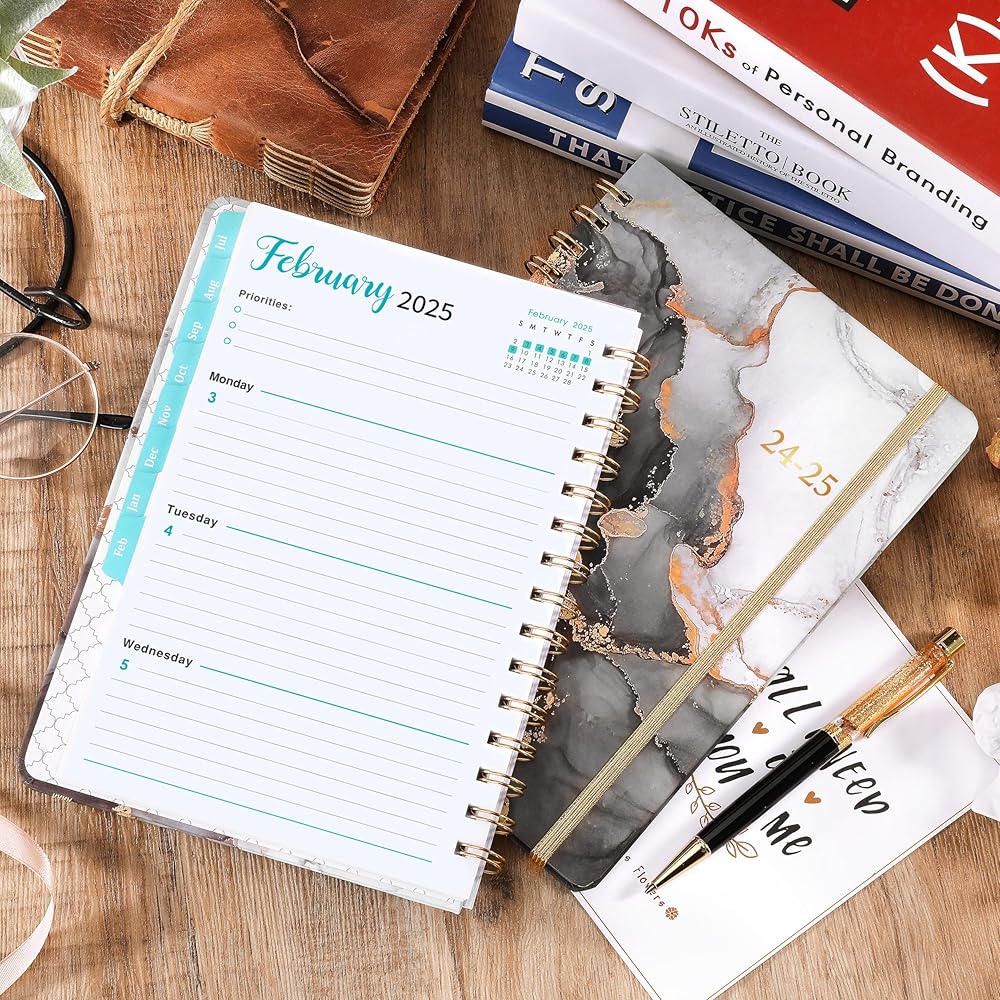 • ✨ ورق سميك ممتاز - ورق أكثر سمكًا من مخطط 2024-2025 العادي يساعد على تقليل نزيف الحبر. الورق الأبيض الساطع والخالي من الأحماض المستخدم في مخطط 2024-2025 هذا صديق للبيئة مع مواد خام نباتية بالكامل ويساعد هذا المخطط 2024-2025 على تنظيم حياتك بأناقة مع هذا المخطط المصمم الأنيق والرائع. امنحنا فرصة ودعنا نعرض لك مخططًا رائعًا للفترة 2024-2025!