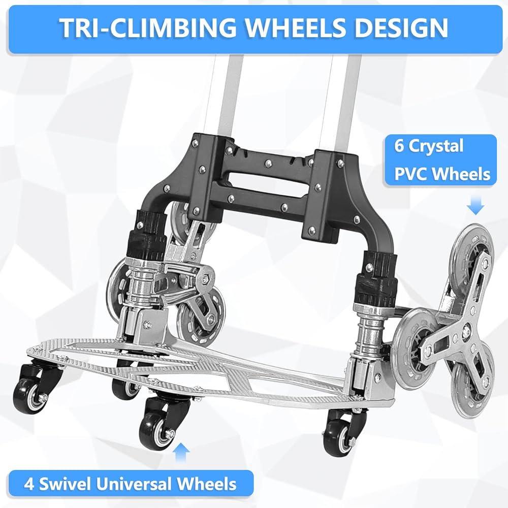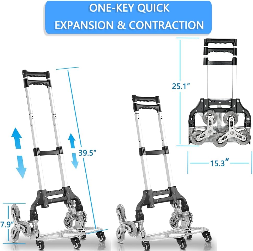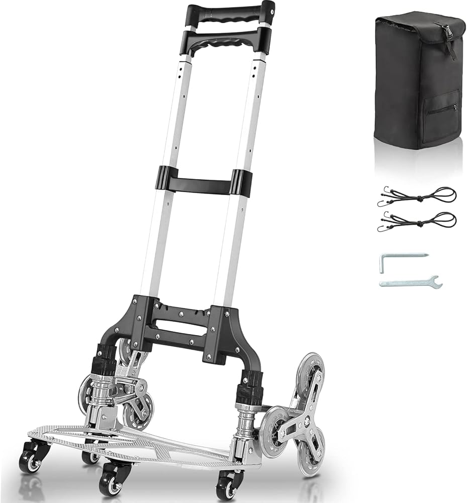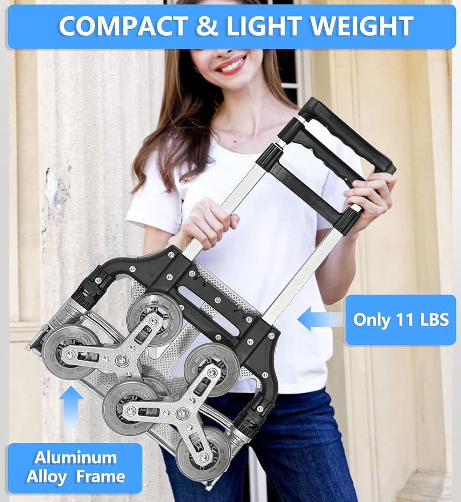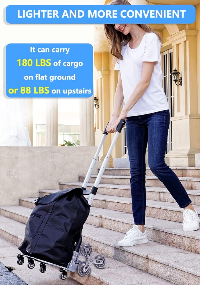 🌞 تصميم عجلات ثلاثية التسلق: عربات تسلق السلالم الخاصة بنا مجهزة بـ 6 عجلات لتسلق السلالم و4 عجلات دوارة عالمية 360 درجة، هذه العجلات العشرة تجعل عربة اليد القابلة للطي تتحرك مع القليل من الضوضاء وتتدحرج بسلاسة. الإطار المصنوع من سبائك الألومنيوم يجعله صلبًا ومتينًا ومضادًا للشيخوخة، ويمكنه حمل 180 رطلاً من البضائع على الأرض المسطحة أو 88 رطلاً على الطابق العلوي.