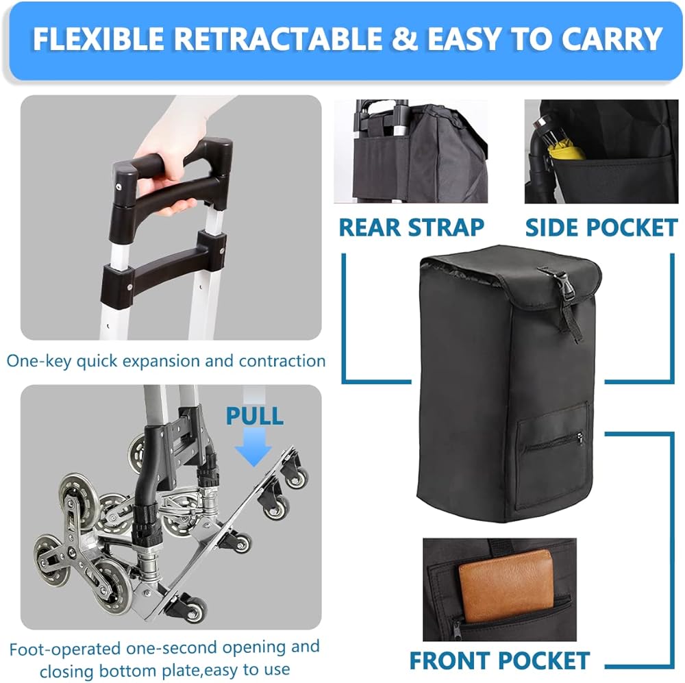 🌞 تأتي مع حقيبة مقاومة للماء و2 حبل بنجي: تأتي هذه الشاحنة اليدوية لتسلق السلالم مع حقيبة سوداء مقاومة للماء قابلة للفصل (الحجم: 20*16*9 بوصة) و2 حبل مطاطي، يمكن للحقيبة حماية أغراضك جيدًا عند المطر أو الثلج. يأتي مزودًا بحبلين بنجي لضمان دعم الحمل بشكل جيد أثناء النقل.
