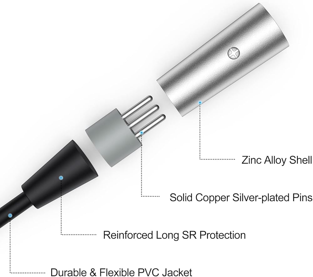 🎤موصل ذاتي القفل: تستخدم كابلات ميكروفون XLR الخاصة بنا هيكلًا من سبائك الزنك مع دبابيس XLR من النحاس الصلب المطلية بالفضة وتصميم موصل ذكر وأنثى ذاتي القفل. لن يتم فصل الكابل إلا عند الضغط على زر إلغاء القفل. يوفر كابل مكبر الصوت XLR هذا اتصالاً مستقرًا بين الأجهزة التي تحتوي على موصلات XLR التي يسهل توصيلها وفصلها.