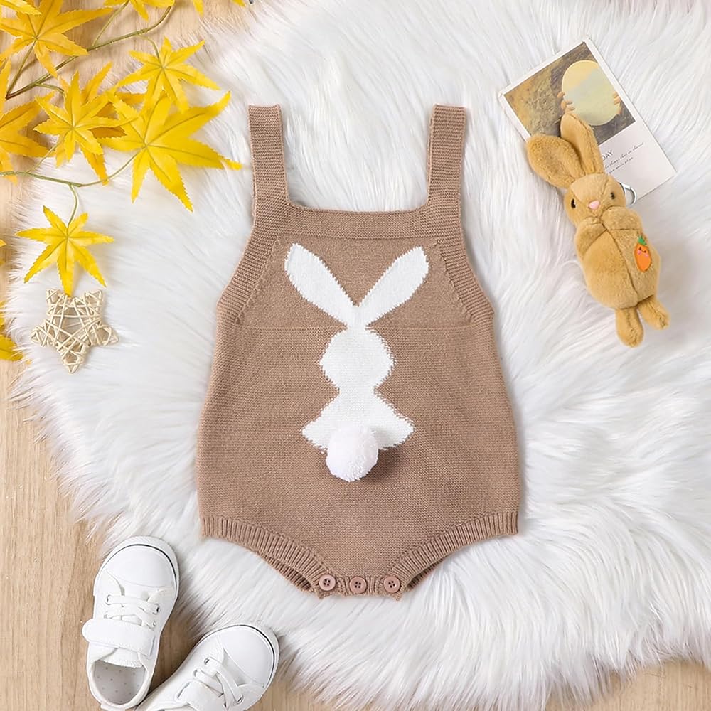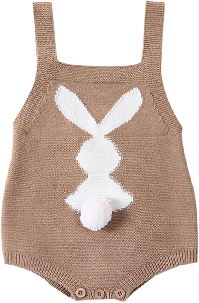 fhutpw عيد الفصح الأرنب رومبير طفل صبي فتاة محبوك بلا أكمام بذلة الزي لطيف الوليد 3 6 9 12 شهرا الملابس (أفخم الذيل الكاكي، 3-6 أشهر)