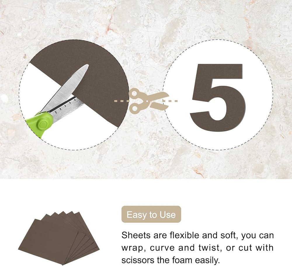 4-[الخامة]: مصنوعة من إسفنج EVA؛ السطح القابل للغسل سهل التنظيف. تتميز الملاءات بالمرونة لسهولة القطع والتشكيل.