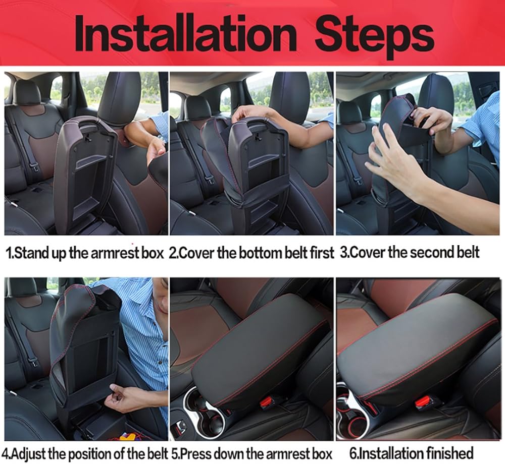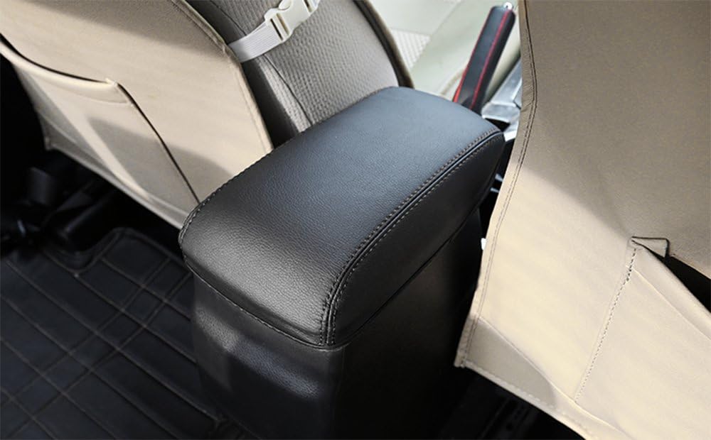 - مادة جلد البولي يوريثان البيئية، لون أسود مع تصميم غرز حمراء يدوية الصنع، للعناية بصندوق مسند الذراع الخاص بك بدقة أكبر.