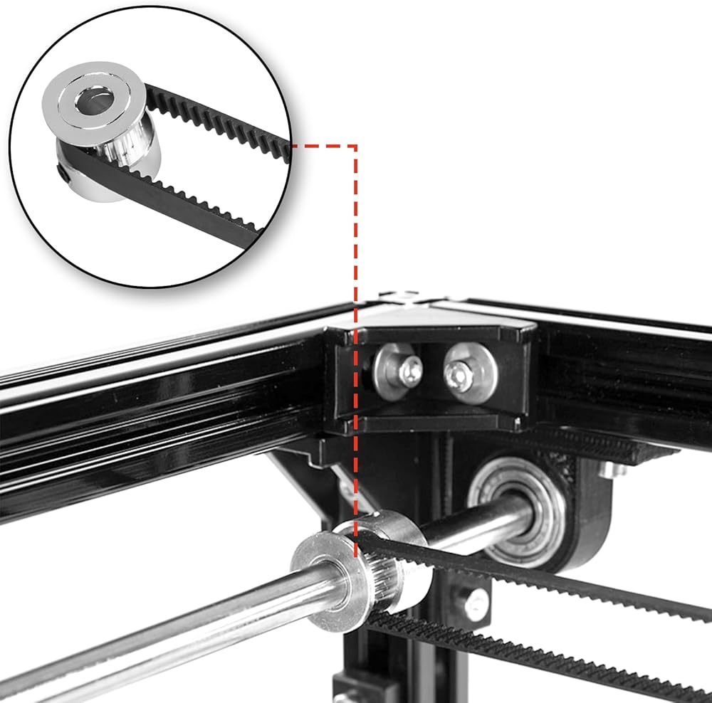 • نقل عالي الأداء: تتضمن مجموعة بكرة حزام التوقيت GT2 حزام توقيت بعرض 6 مم، وعجلة بكرة 20 سنًا، وتباطؤ، وزنبركات شد، وحوامل مشبك تروس لتوفير أداء نقل ممتاز لضمان دقة الطباعة وسرعتها.